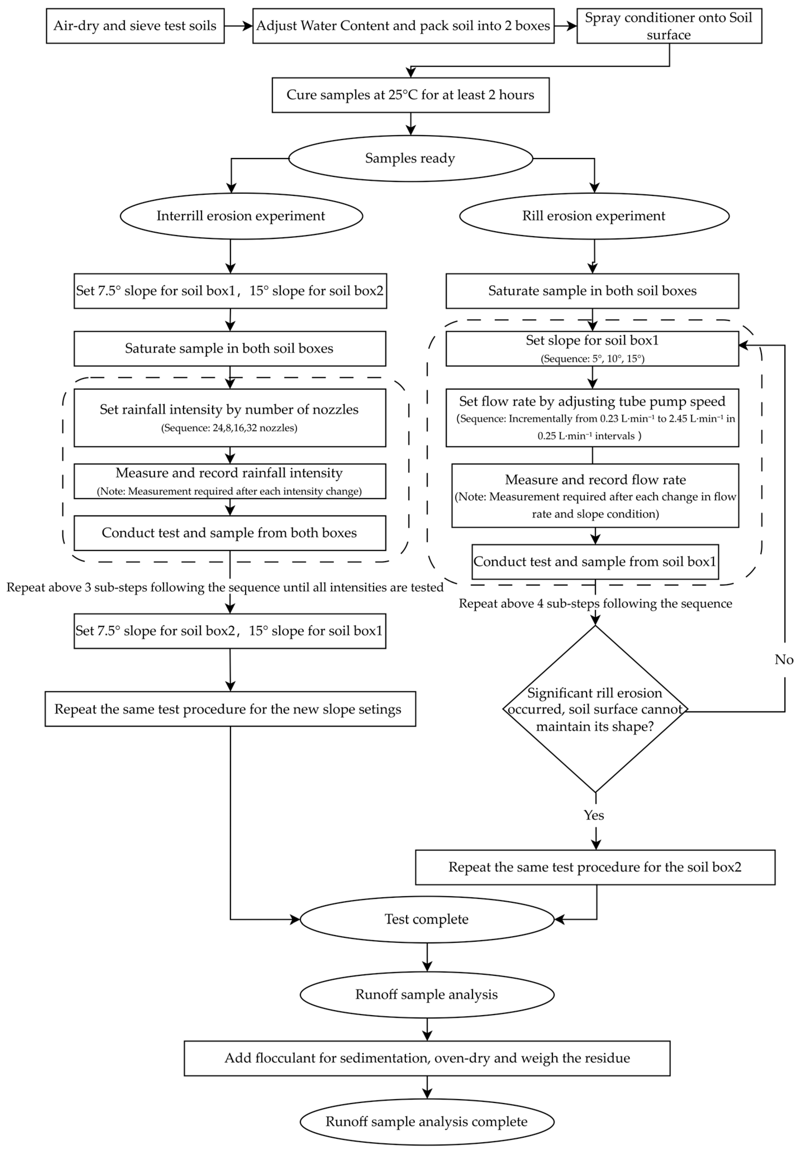 - Verhaegen, T. The use of small flumes for the determination of soil erodibility. Earth Surf. Process. Landf. 1987, 12, 185–194. [Google Scholar] [CrossRef]