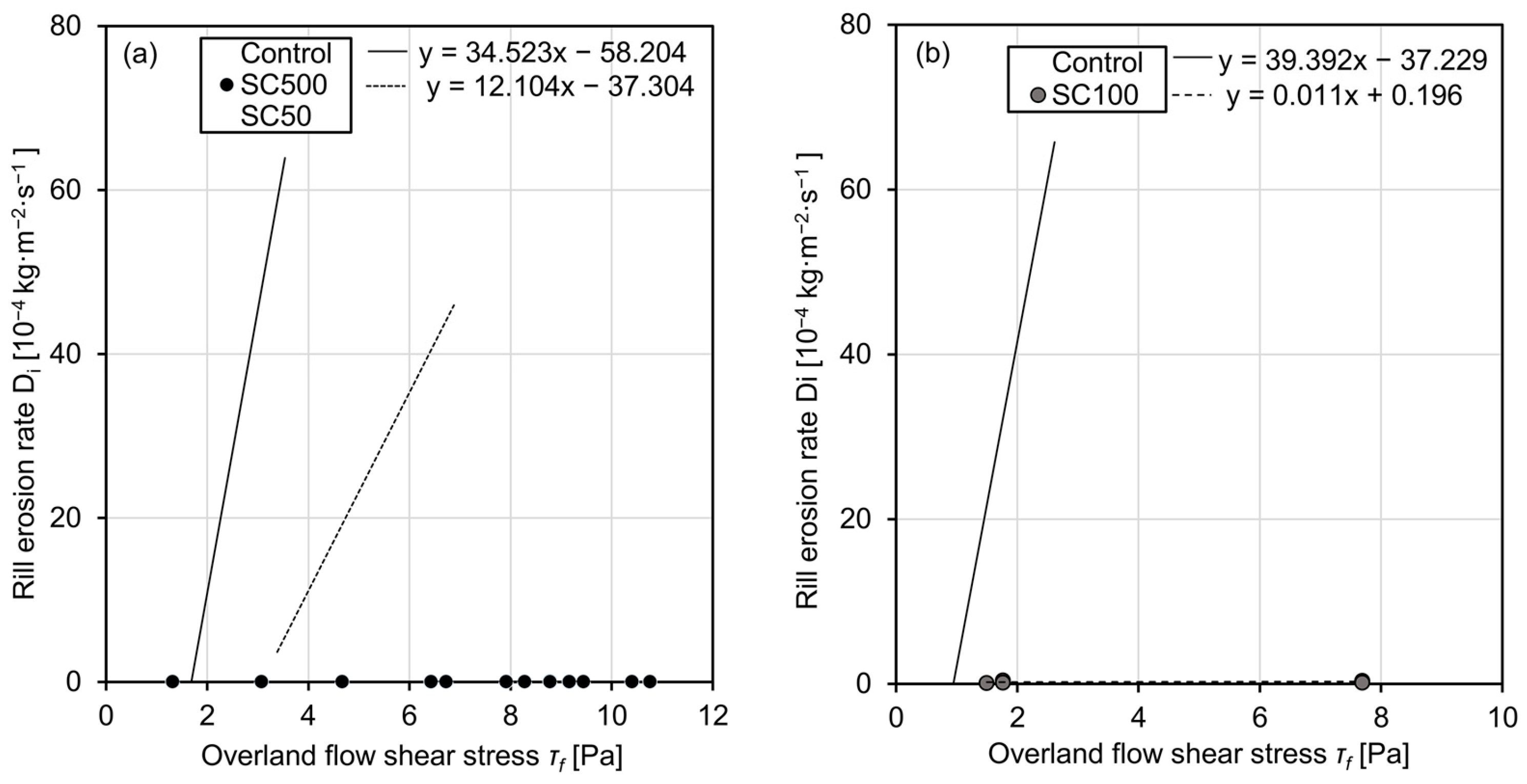 - Yamaguchi, A.; Kanashiki, N.; Ishizaki, H.; Kobayashi, M.; Osawa, K. Relationship between soil erodibility by concentrated flow and shear strength of a Haplic Acrisol with a cationic polyelectrolyte. CATENA 2022, 217, 106506. [Google Scholar] [CrossRef]