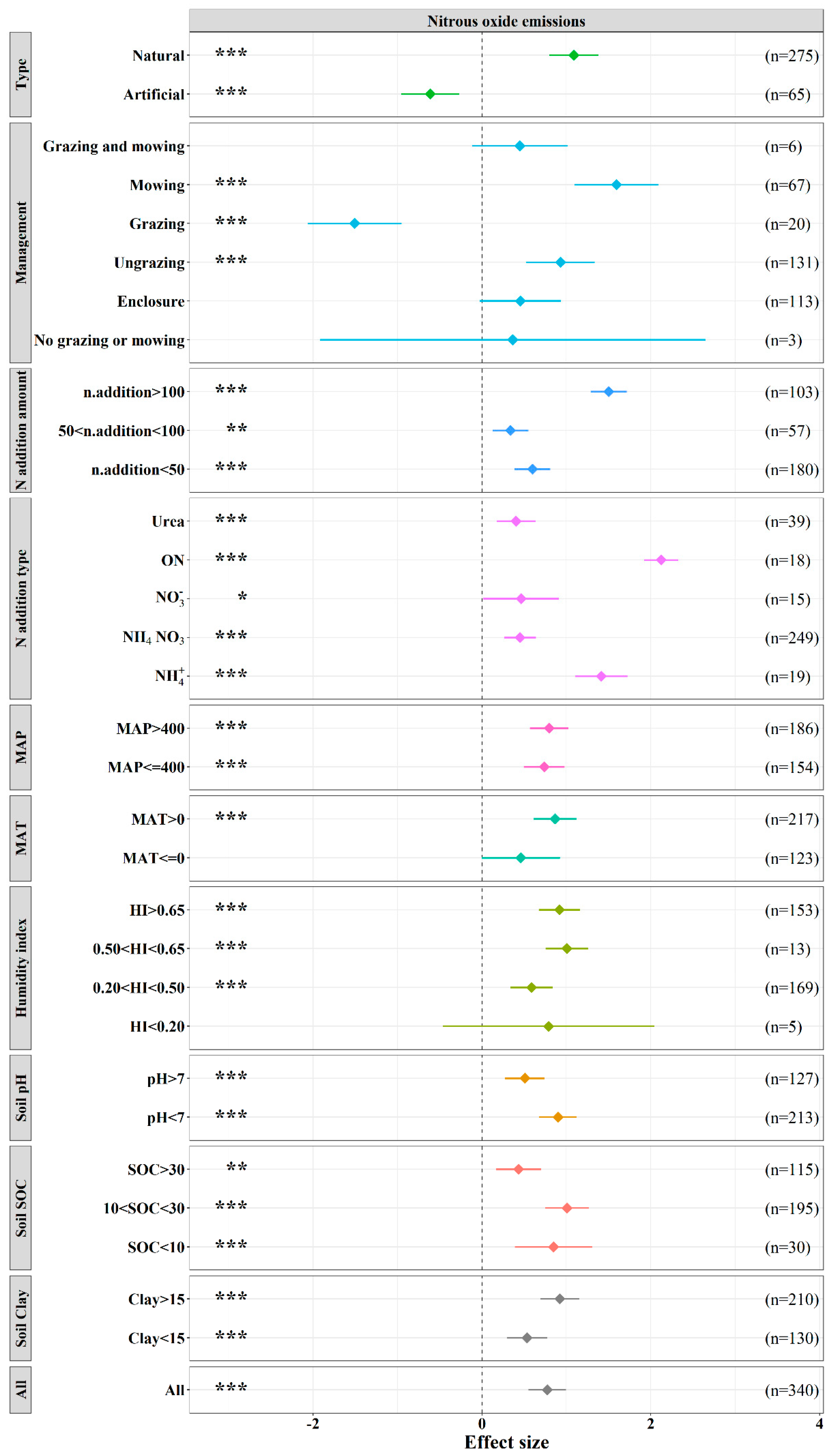 Chicago/Turabian StyleCui, Xiaoqing, Yu Zhang, and Xiping Song. 2025. "Asymmetric Response of Grassland Greenhouse Gases to Nitrogen Addition: A Global Meta-Analysis" Agronomy 15, no. 10: 2365. https://doi.org/10.3390/agronomy15102365