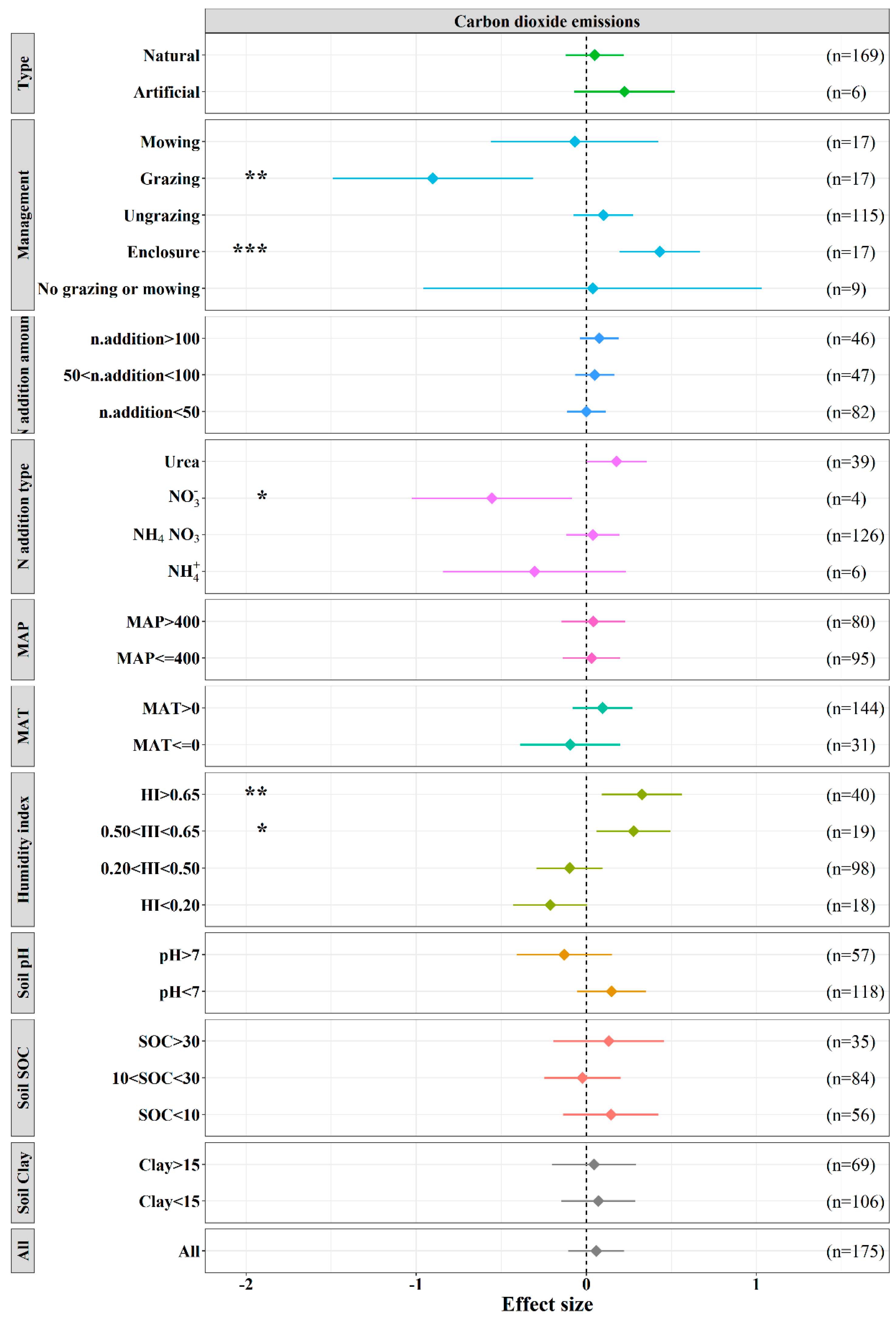 3.2. Factors Driving the Response of Grassland Soil GHG Fluxes to N Addition