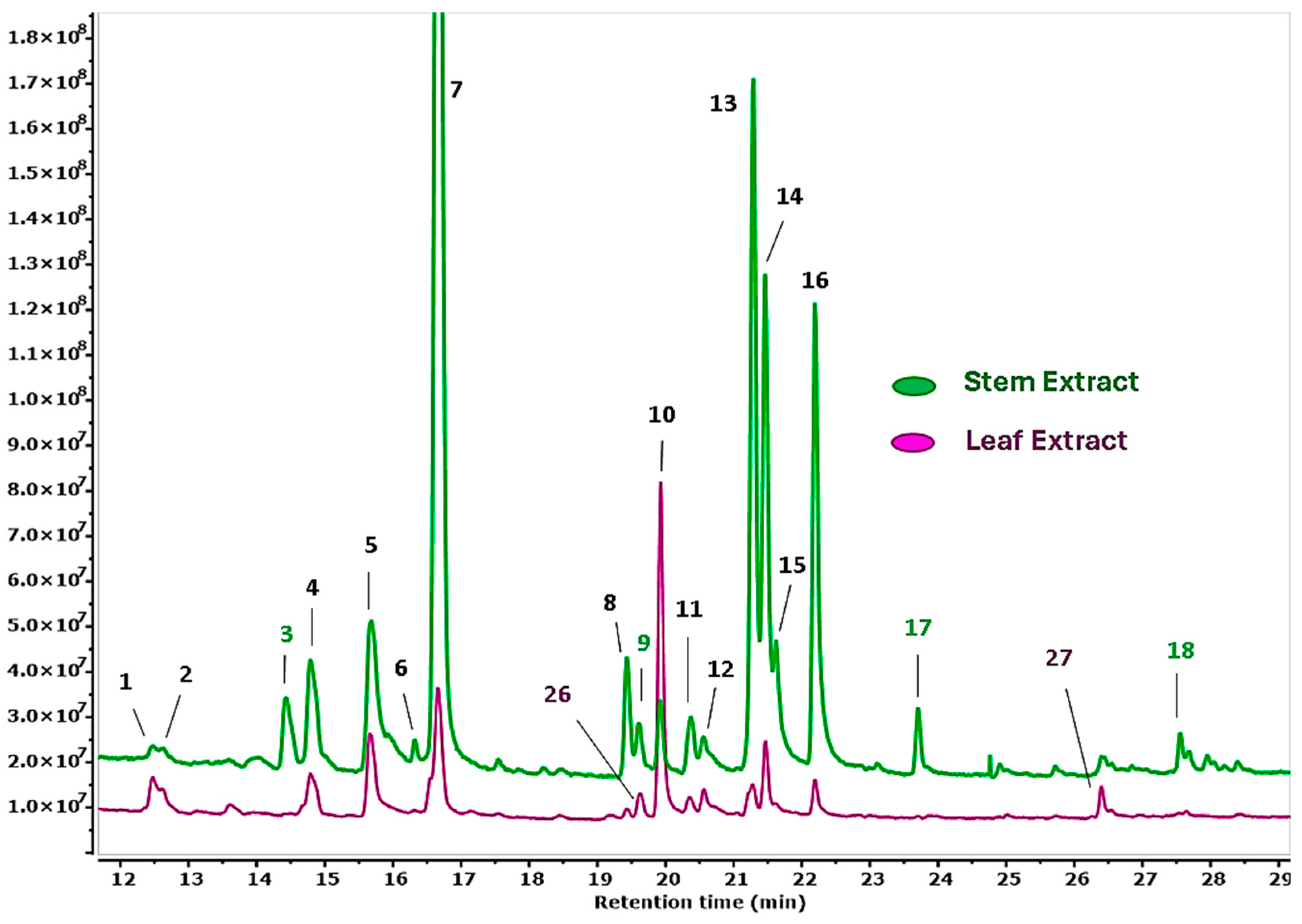 | 1 | Neophytadiene | 12.47 | 0.13 | 278.5 | C20H38 |
