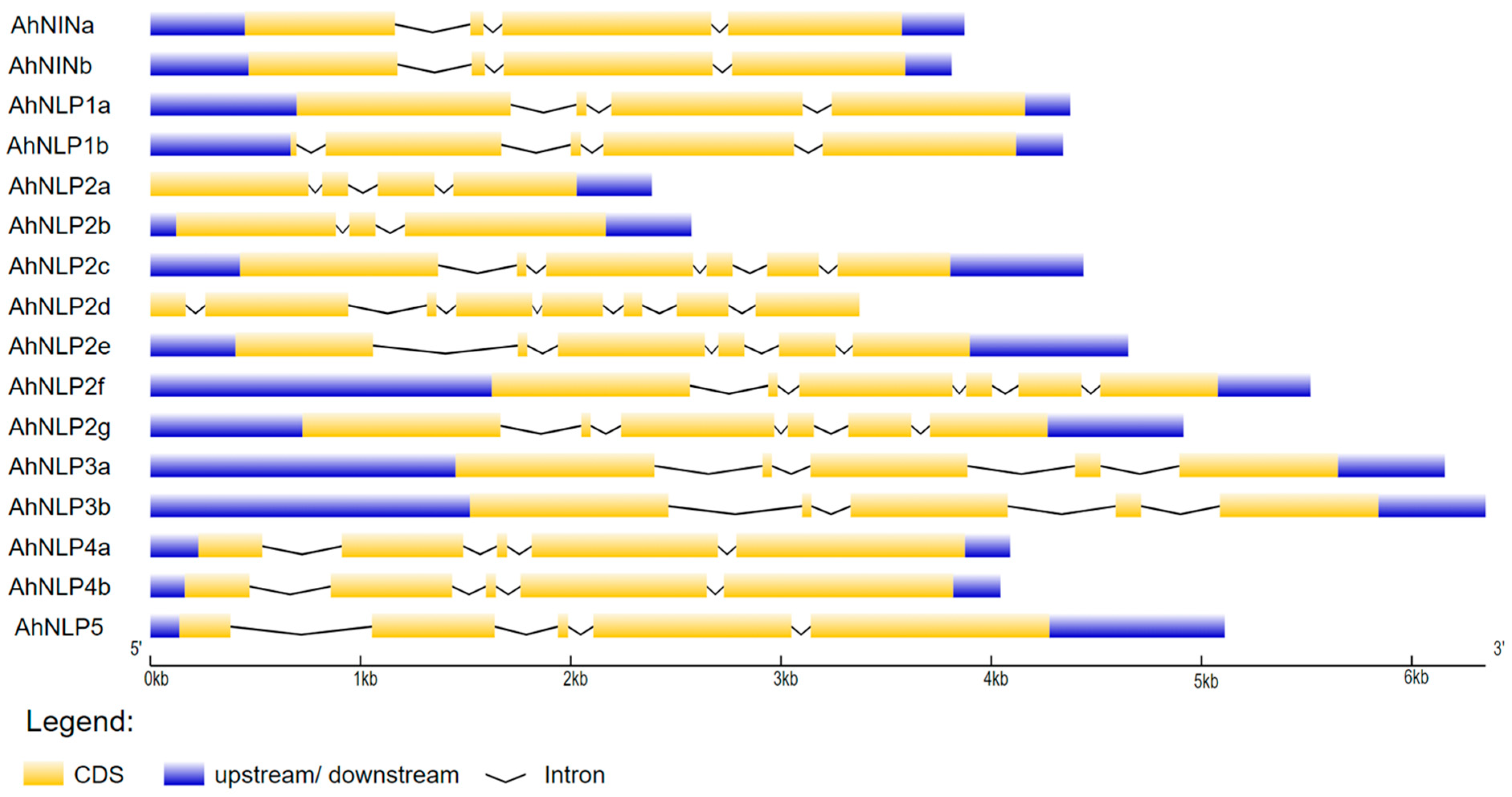 3.4. Gene Structure of the AhNIN and AhNLP Genes