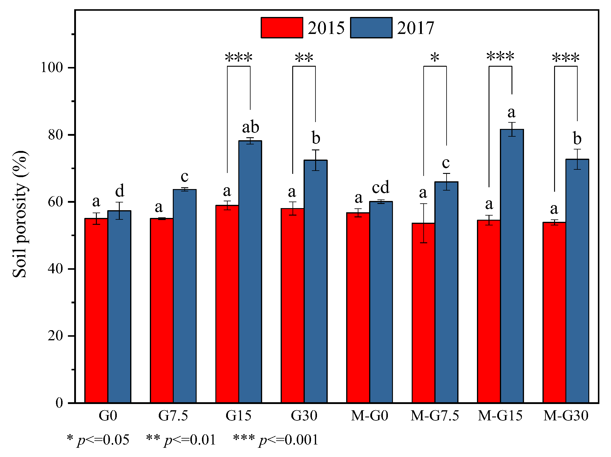 3.1. Variation in Soil Physical Properties Induced by Gypsum and Manure
