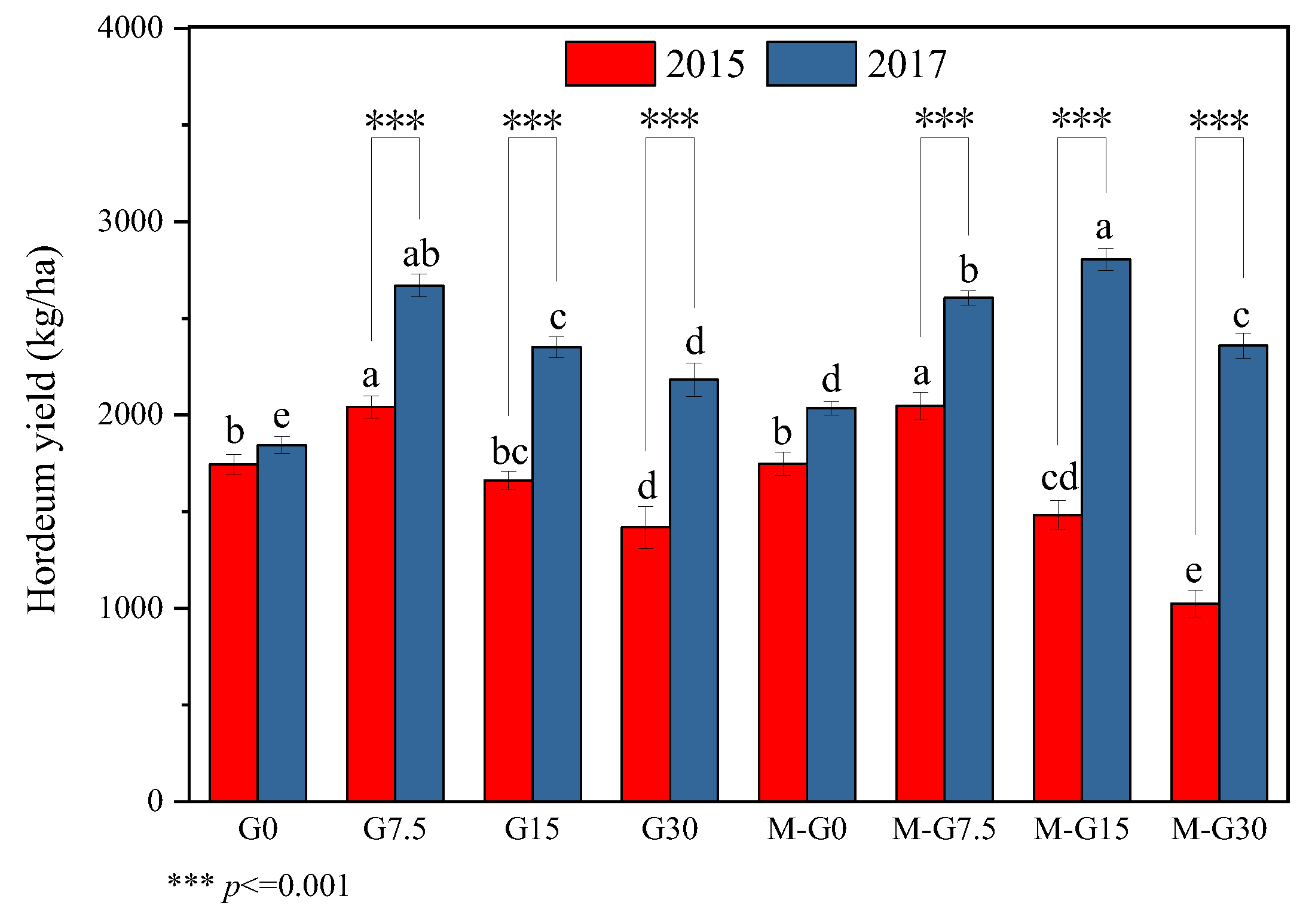 3.3. Effect of Gypsum and Manure on Yield