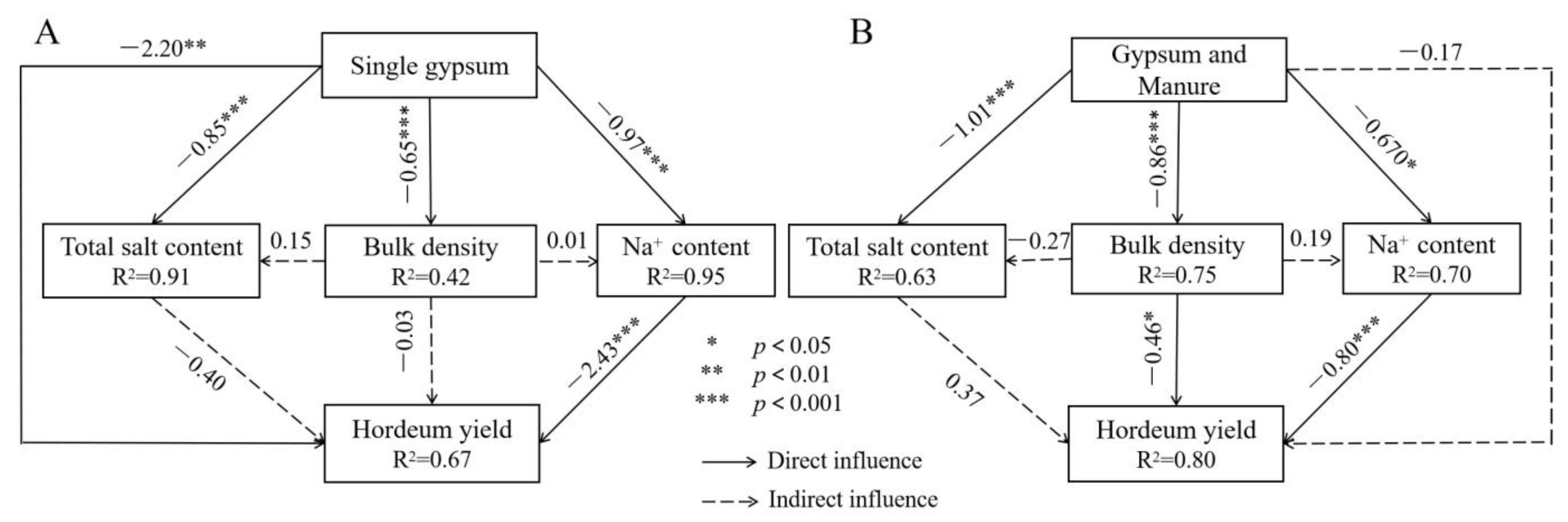 4.2. Direct Effect of Soil Physicochemical Properties on Hordeum Yield