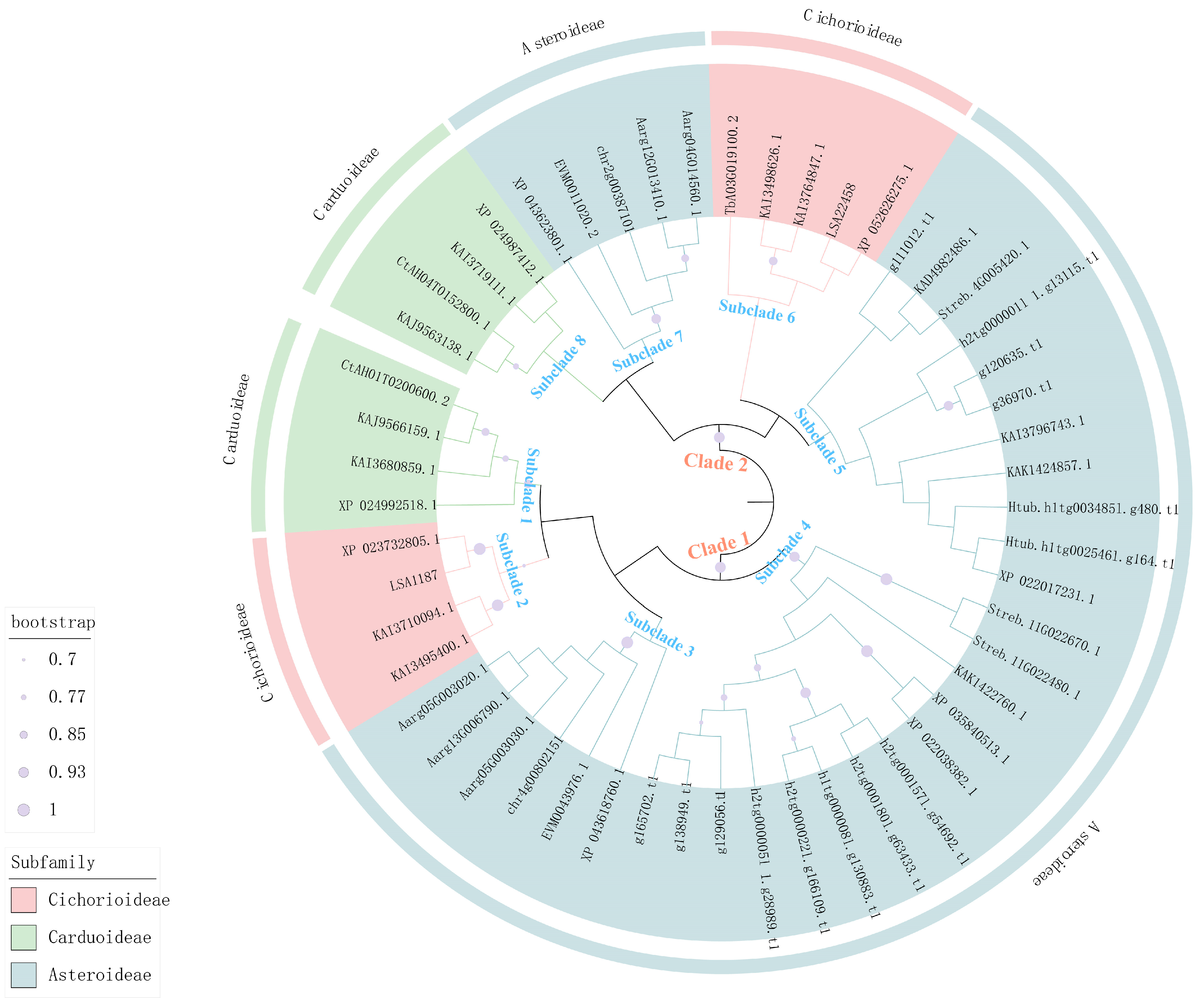 2.3. Bioinformatic Analysis of AG Gene in Asteraceae