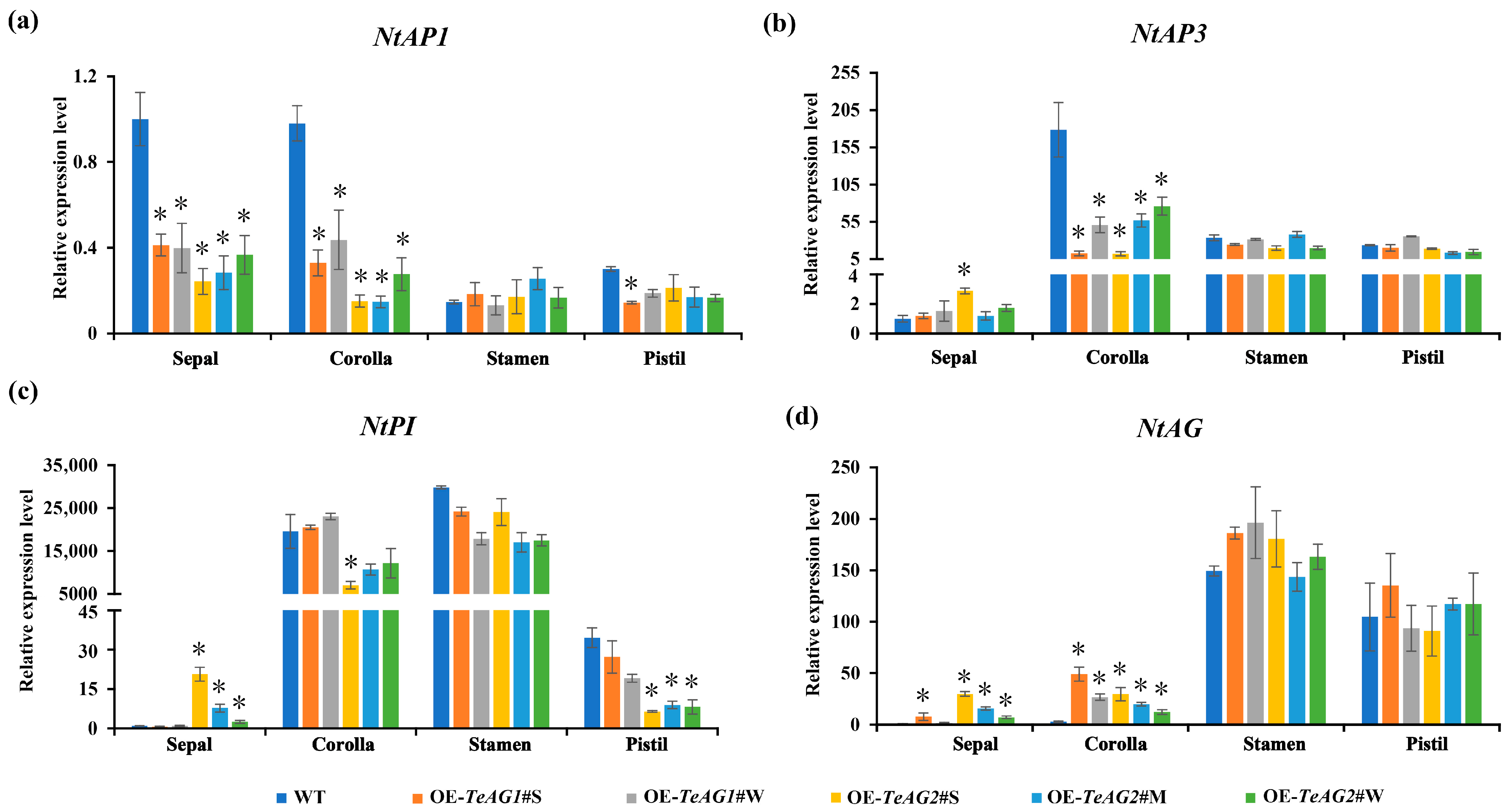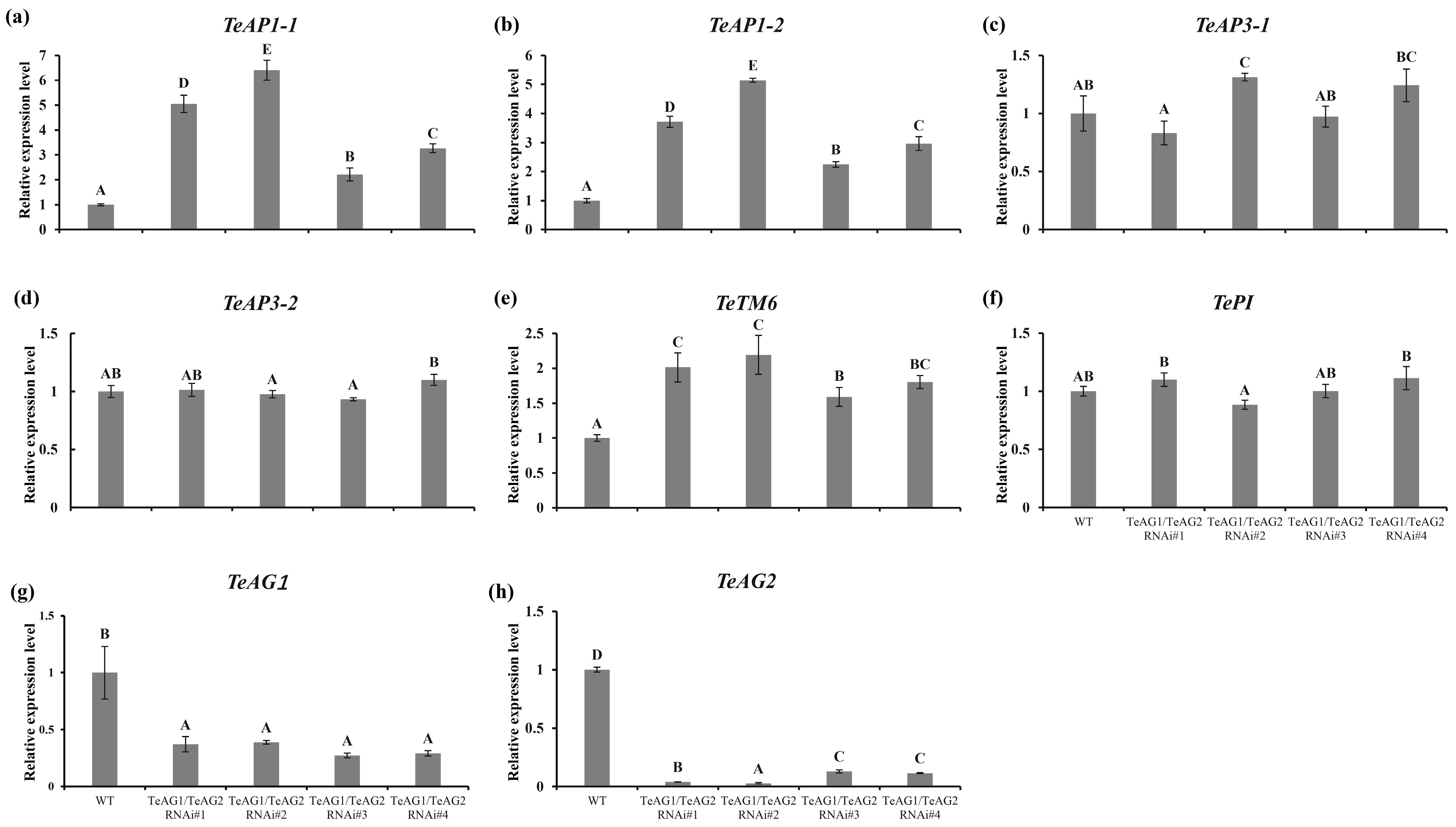 4.3. TeAG Genes Play Divergent Functions in Determining Floral Organs