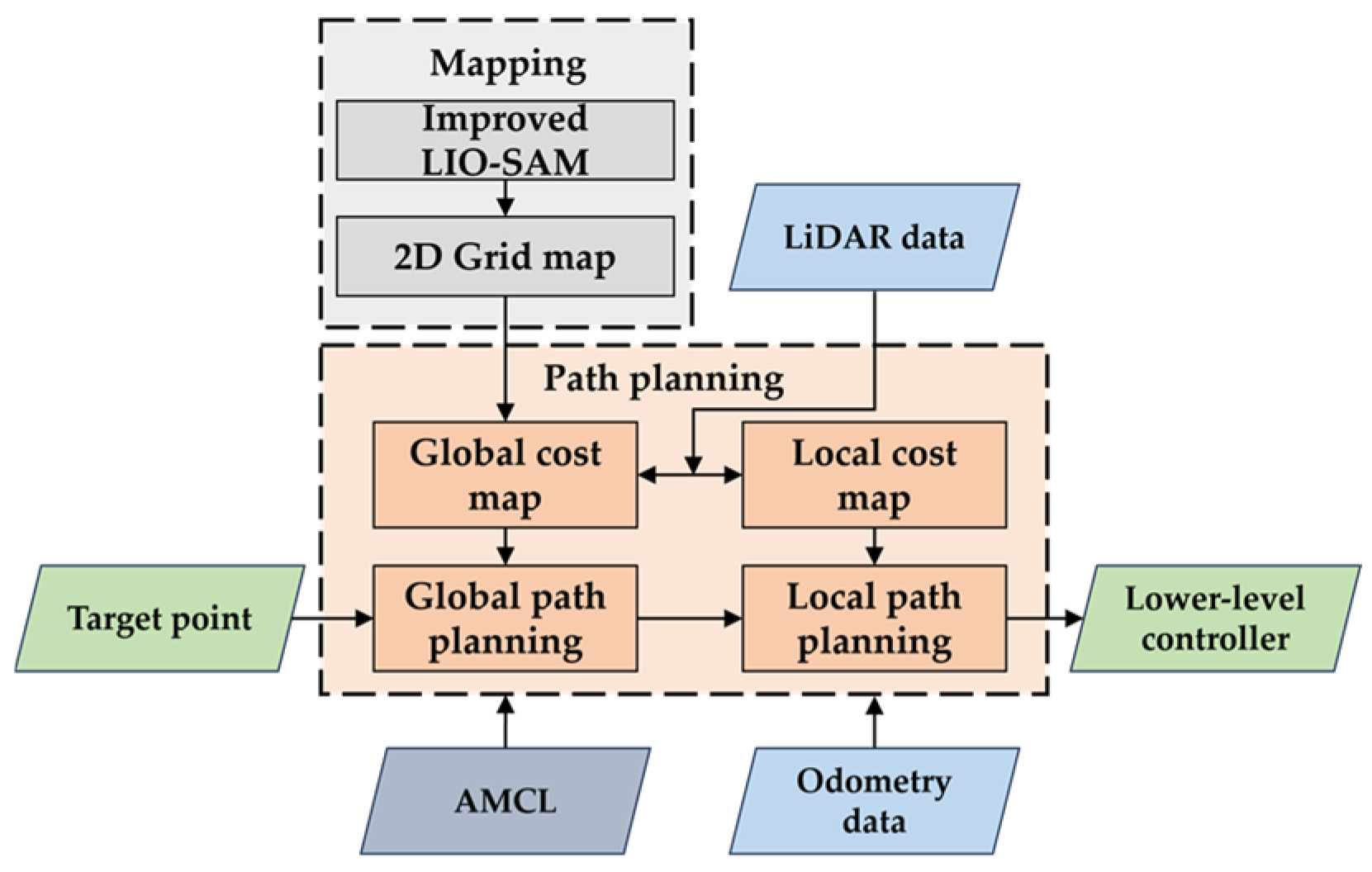 21] presented an improved two-stage path-planning algorithm that achieved superior navigation performance in dynamic, crowded indoor environments.