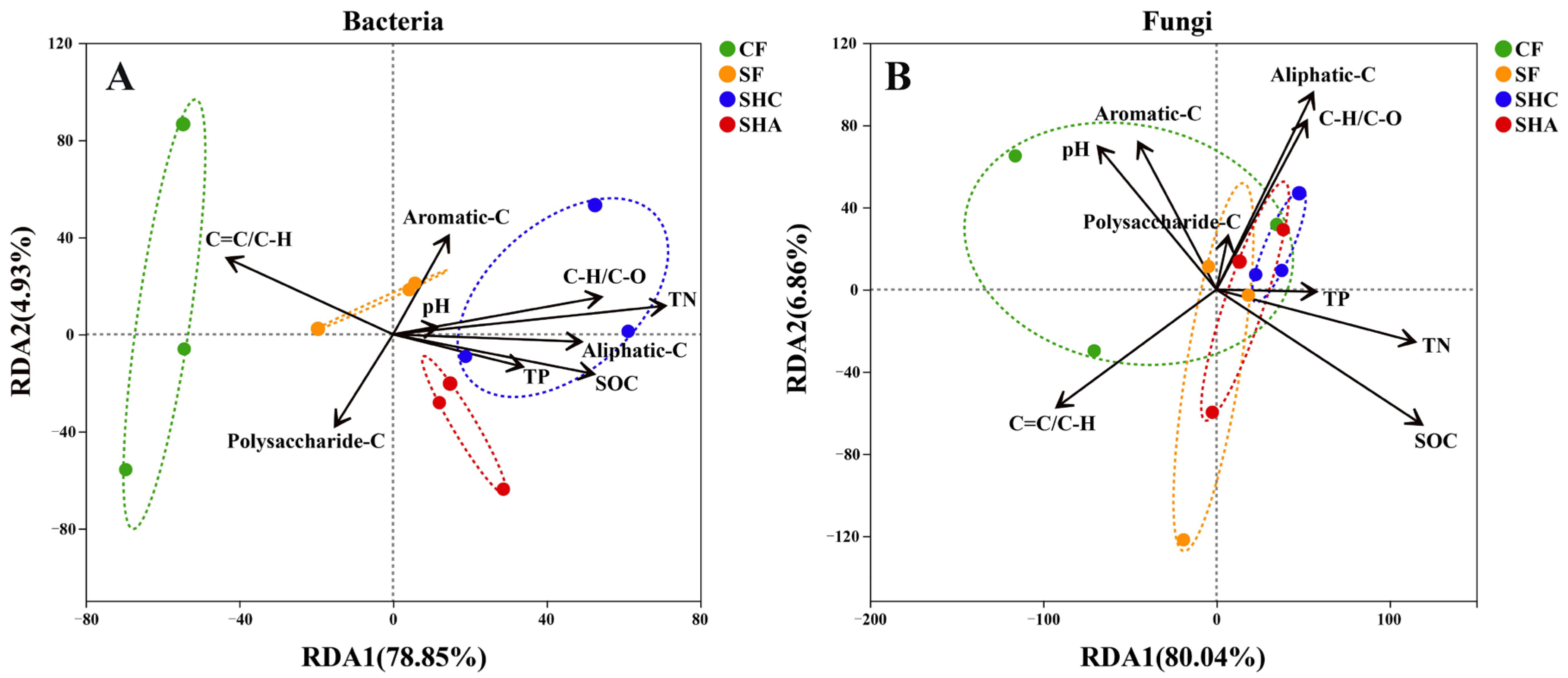 4.3. Relationships Between Edaphic Factors and Soil Microbial Community Composition