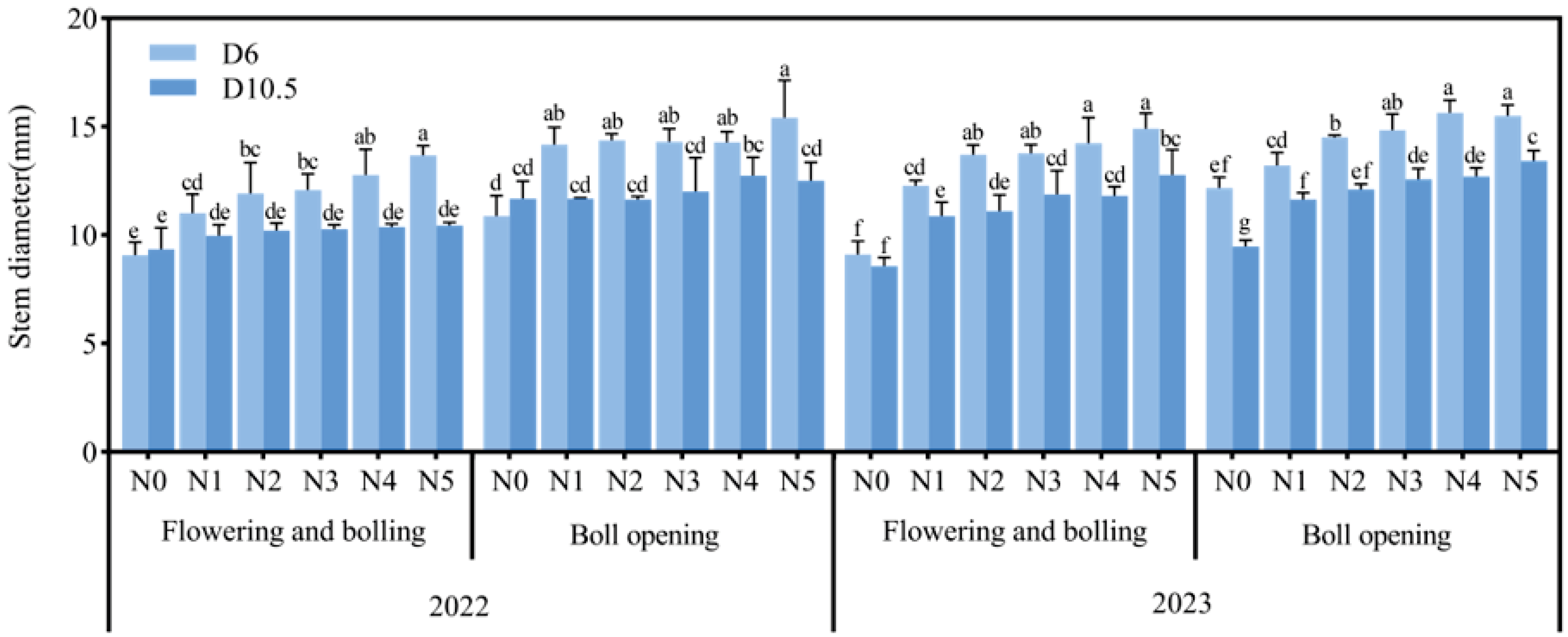 Liu, J.; Ma, Y.; Wang, S.; Wang, S.; Zhu, L.; Zhang, K.; Zhang, Y.; Li, C.; Liu, L.; Sun, H. Synergistic Optimization of Root–Shoot Characteristics, Nitrogen Use Efficiency and Yield by Combining Planting Density with Nitrogen Level in Cotton (Gossypium hirsutum L.). Agronomy 2025, 15, 2383. https://doi.org/10.3390/agronomy15102383