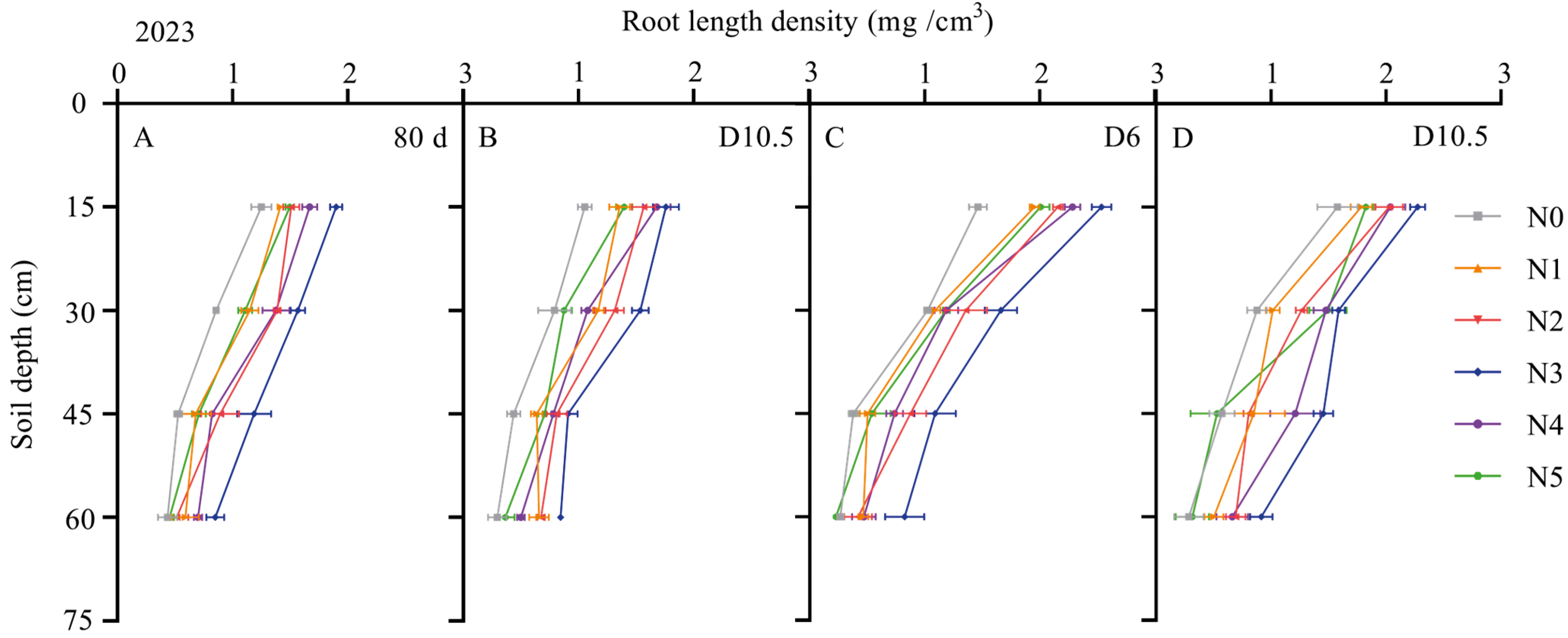 - Zhao, B.; Tong, L.; Liu, H.; Hao, M.; Zhang, R. Optimizing Root Morphology Is a Key to Improving Maize Yield under Nitrogen Reduction and Densification Cultivation. Field Crops Res. 2025, 329, 109958. [Google Scholar] [CrossRef]