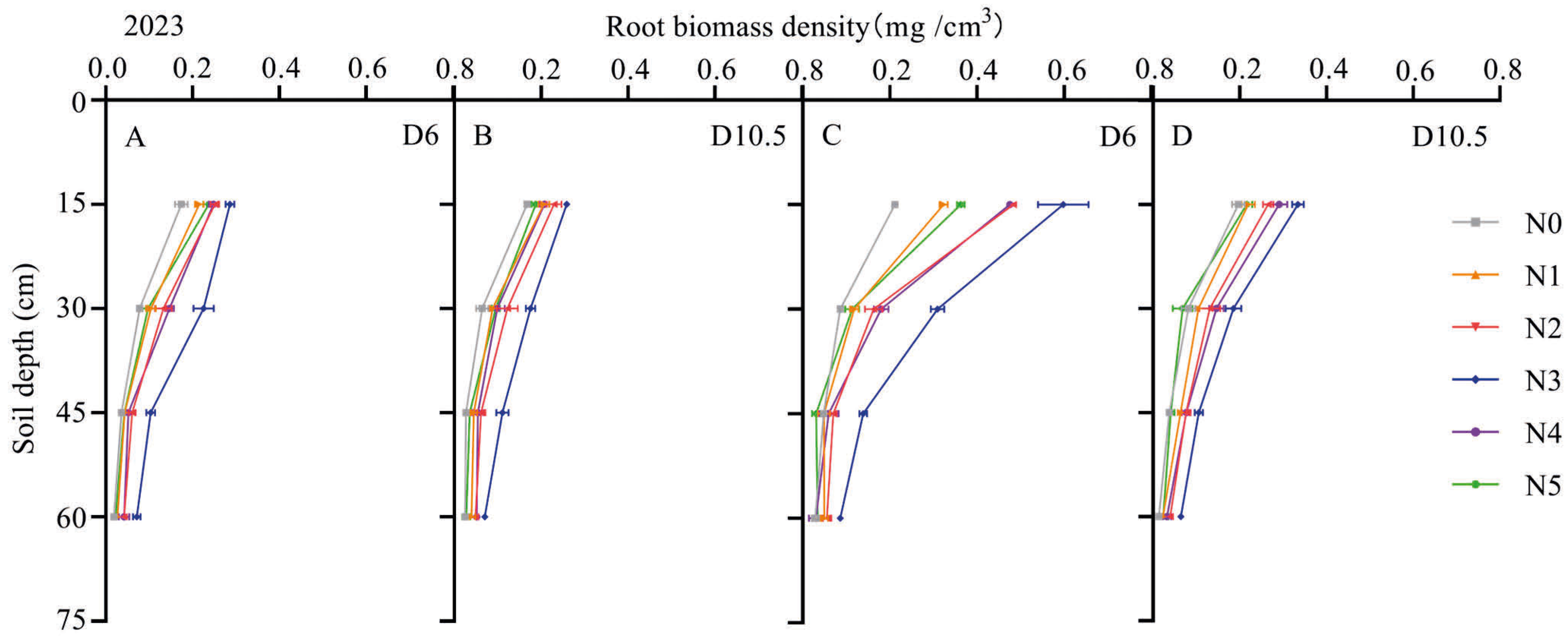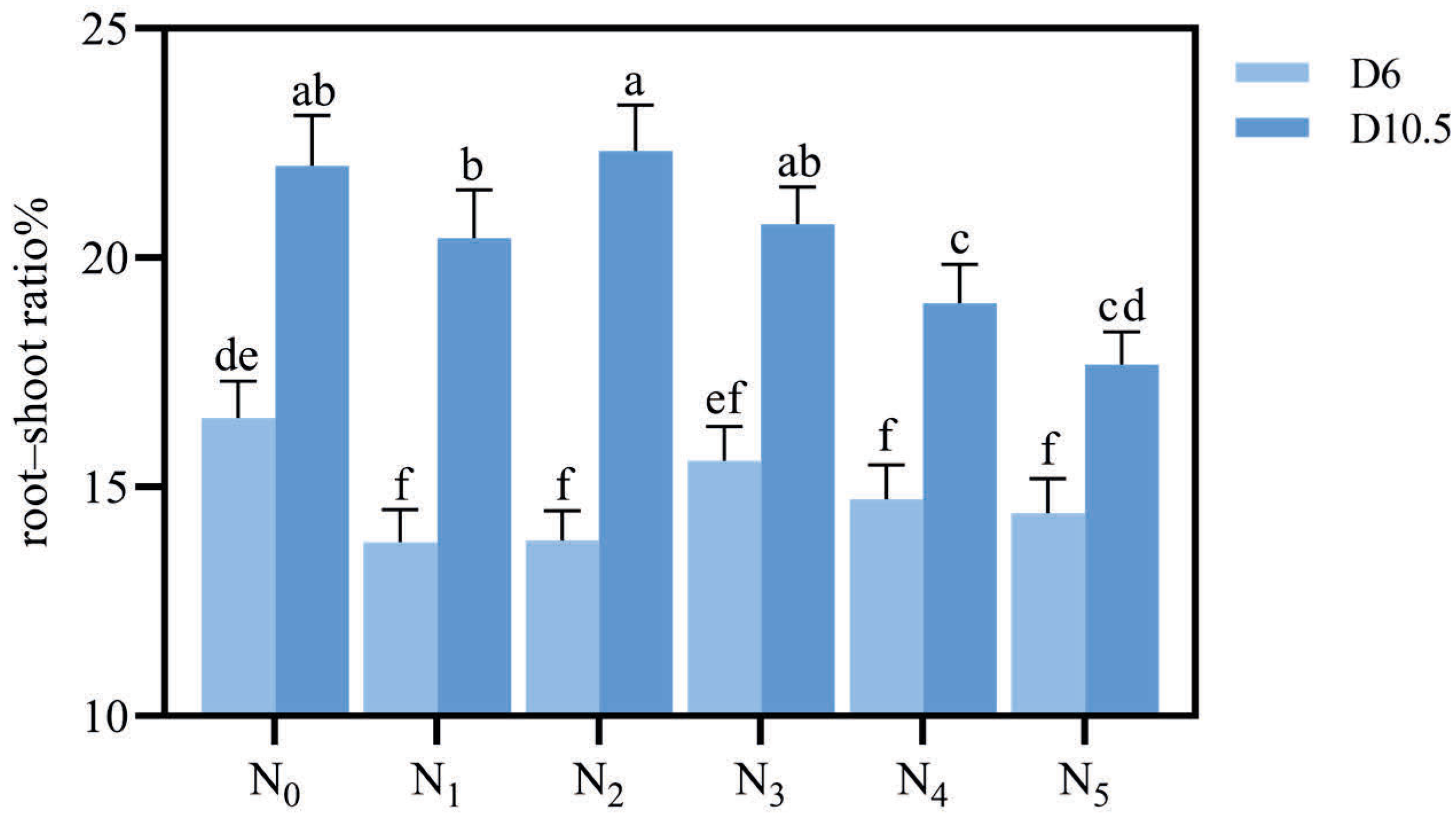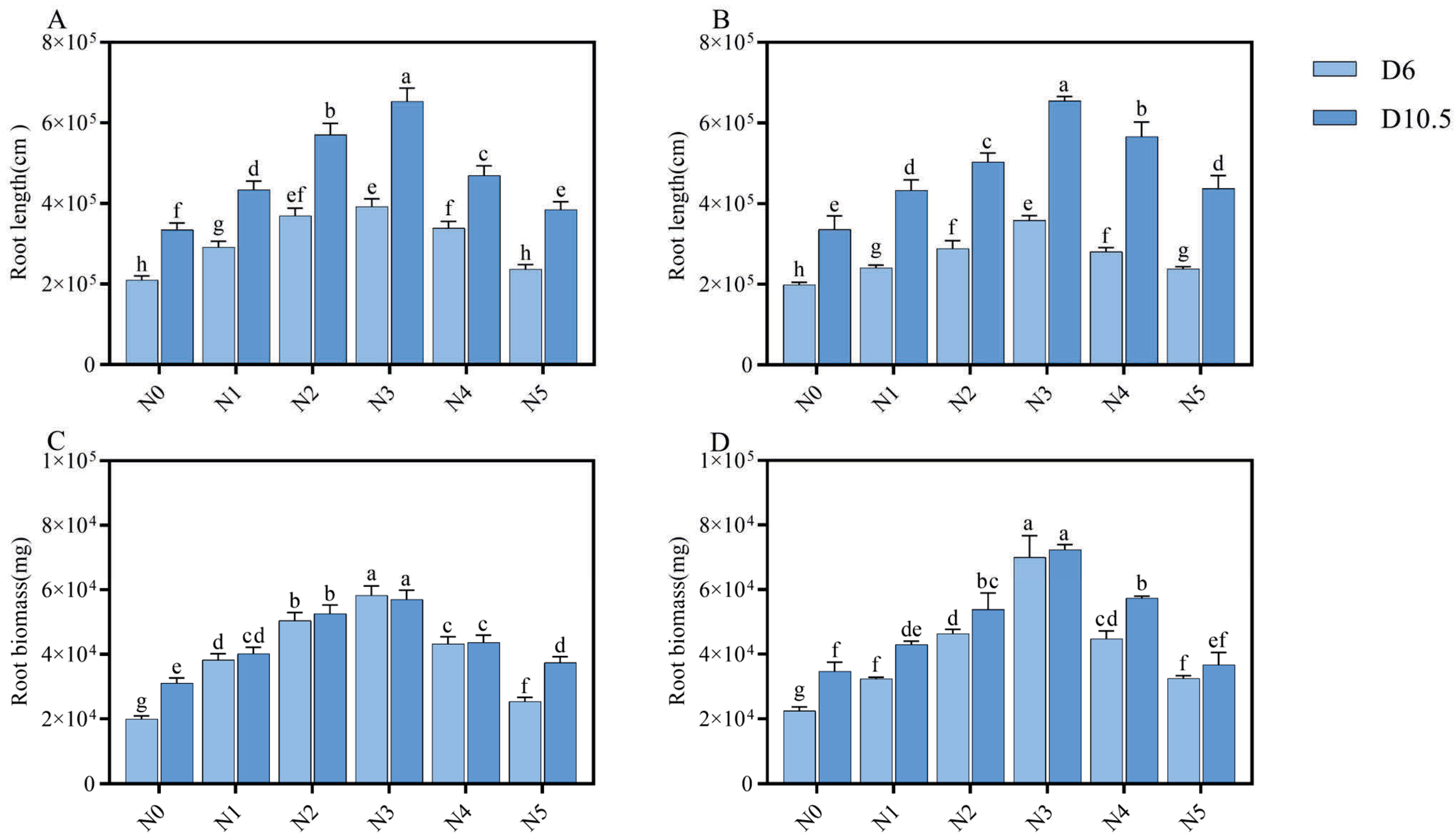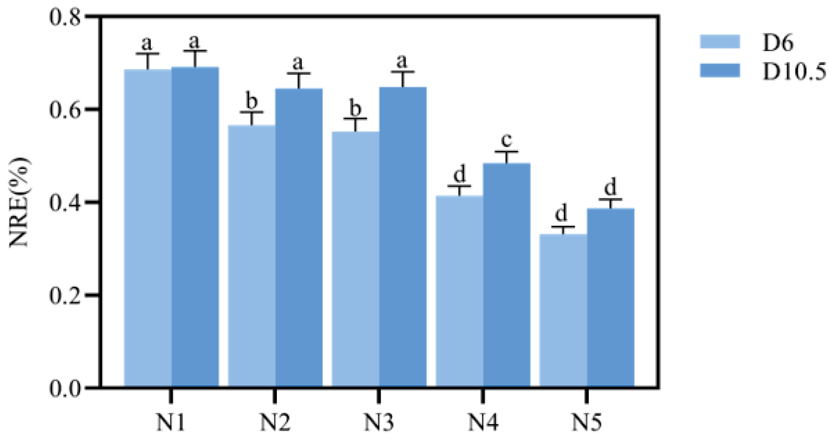 D10.5 × N2 | 4.25 ± 0.21 c | 6.68 ± 0.33 b | 28.61 ± 0.23 c | 29.39 ± 1.02 c |