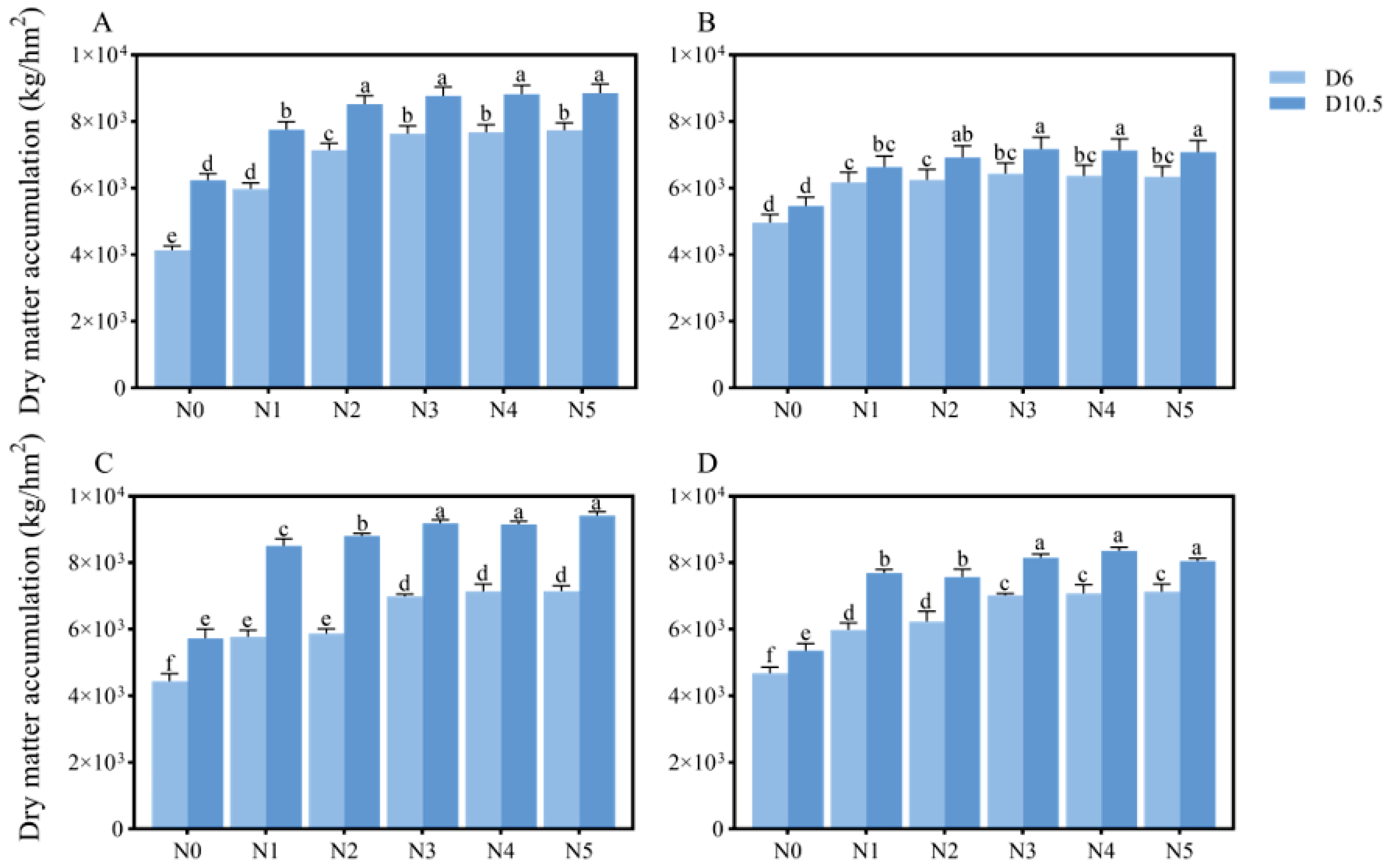 3.3. Effects on the Accumulation and Distribution of Dry Matter