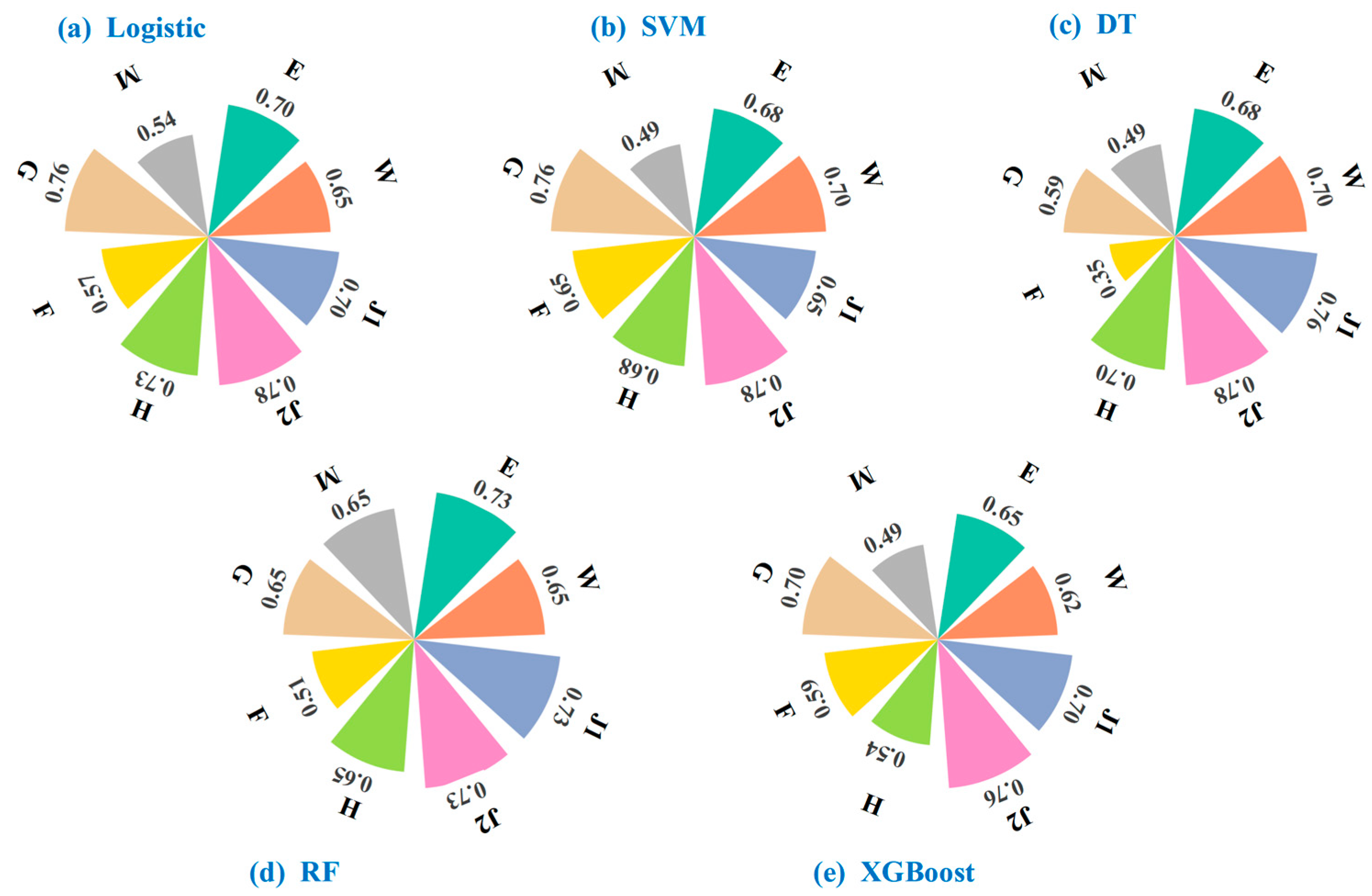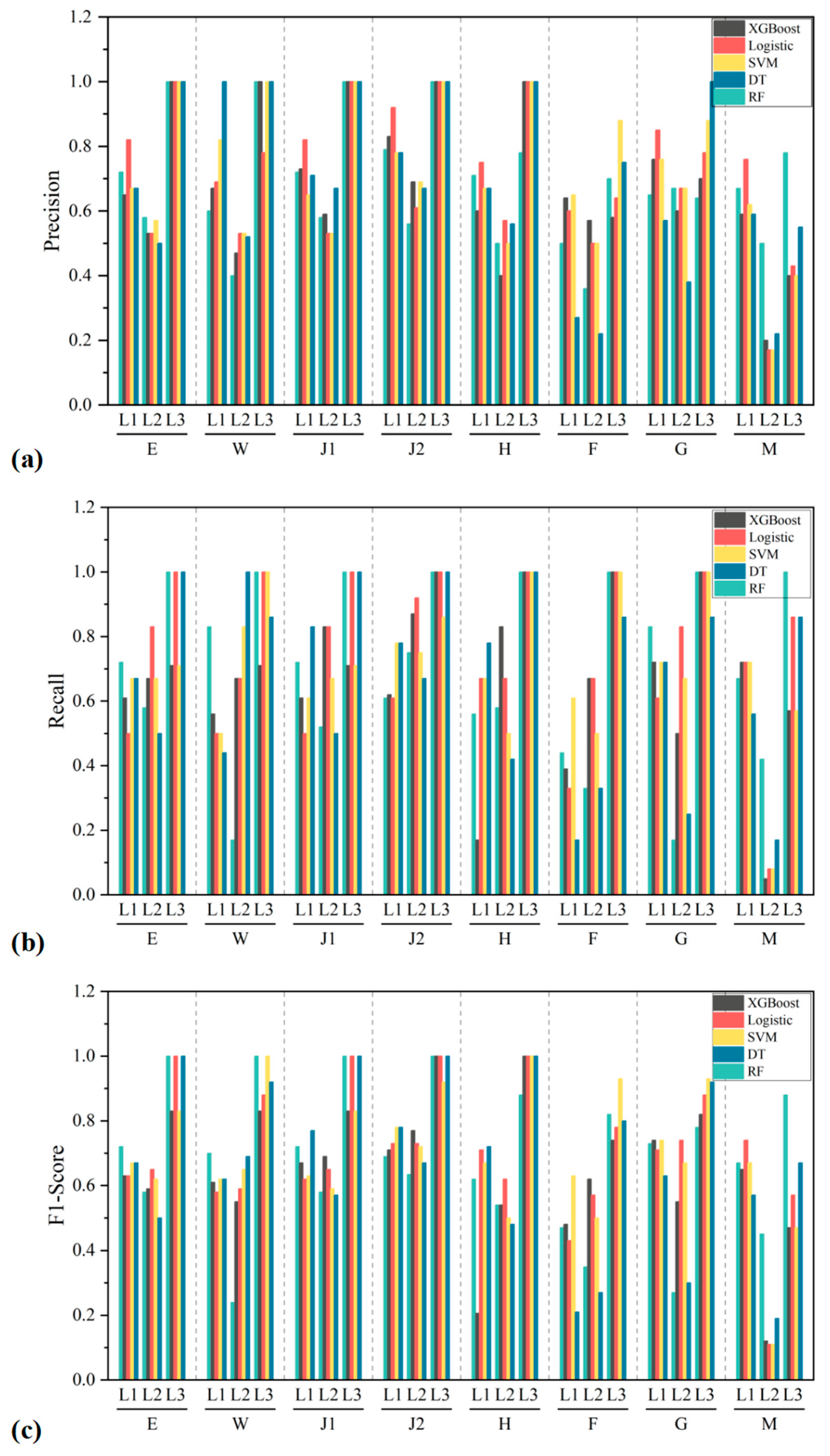 - Huang, J.H.; Wen, H.J.; Hu, J.W.; Liu, B.; Zhou, X.Z.; Liao, M.Y. Deciphering decision-making mechanisms for the susceptibility of different slope geohazards: A case study on a SMOTE-RF-SHAP hybrid model. J. Rock. Mech. Geotech. Eng. 2025, 17, 1612–1630. [Google Scholar] [CrossRef]