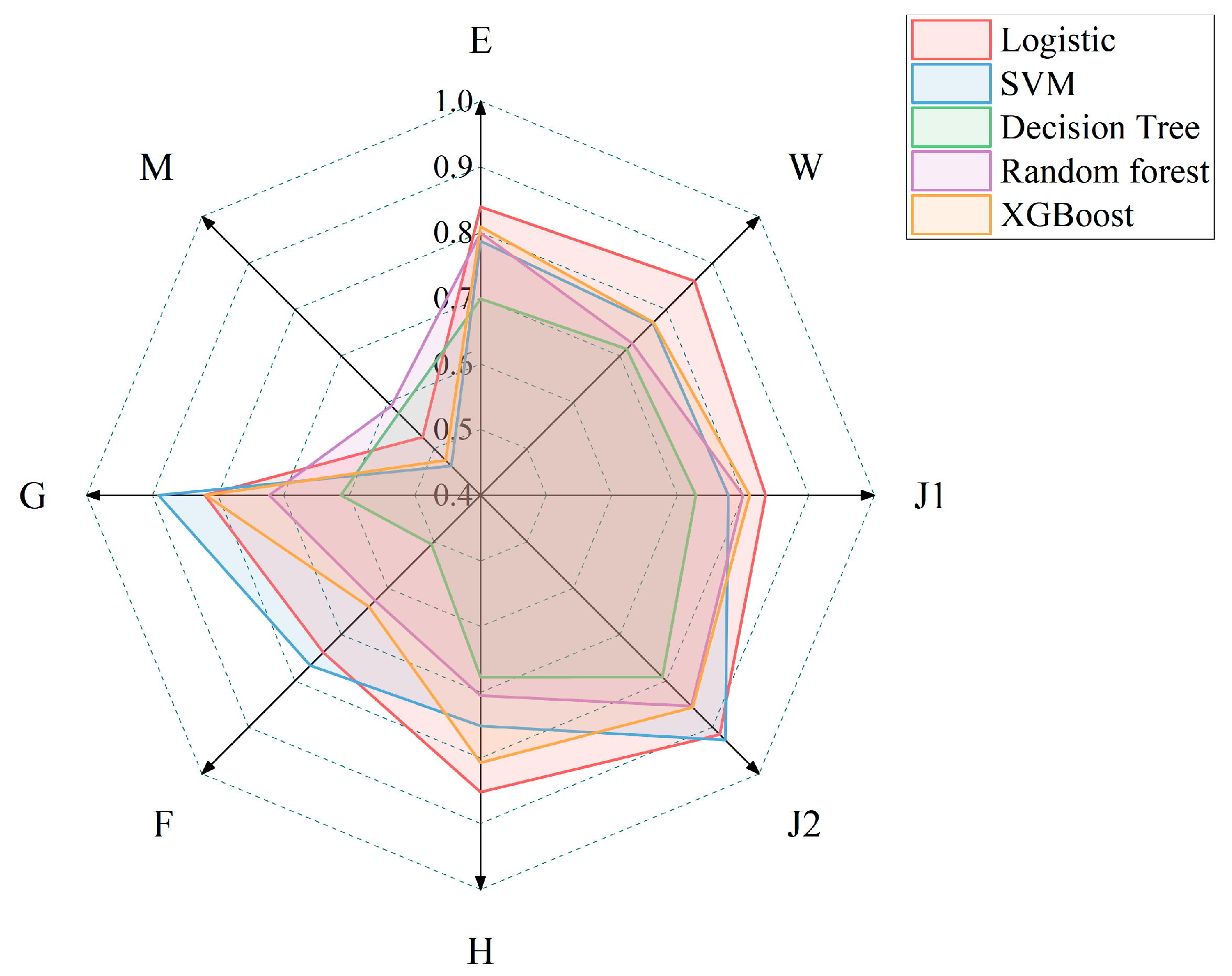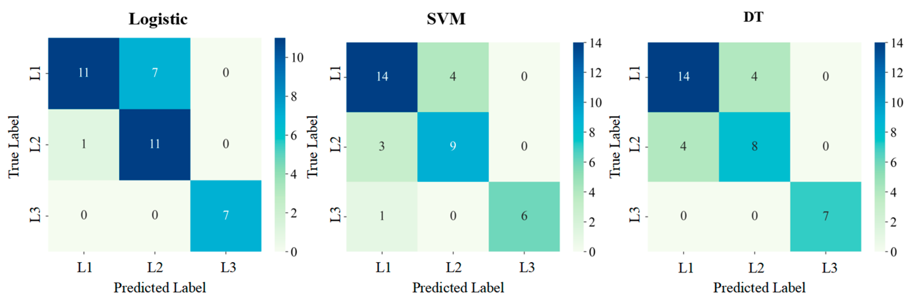 3.4. Classification Results of Wheat Levels with Different Tolerance Levels to Late Sowing
