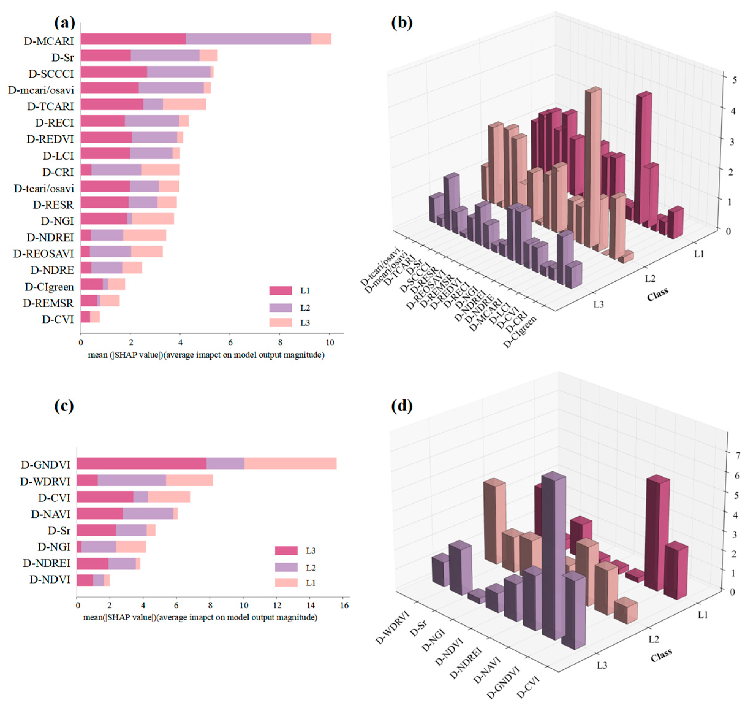 | F | D-GRVI (0.0446), D-NAVI (0.0383), D-NDREI (0.0483), D-RVI (0.0323), D-TCARI (0.0338), D-mcari/osavi (0.0352) |