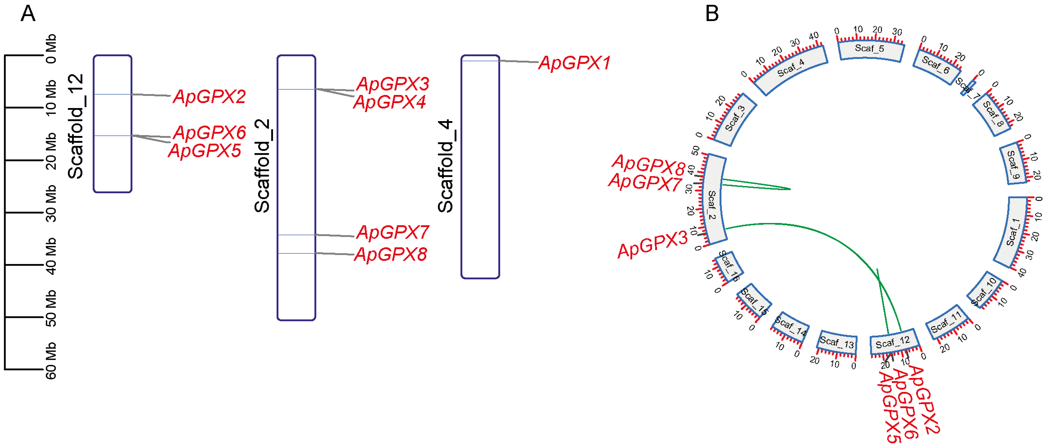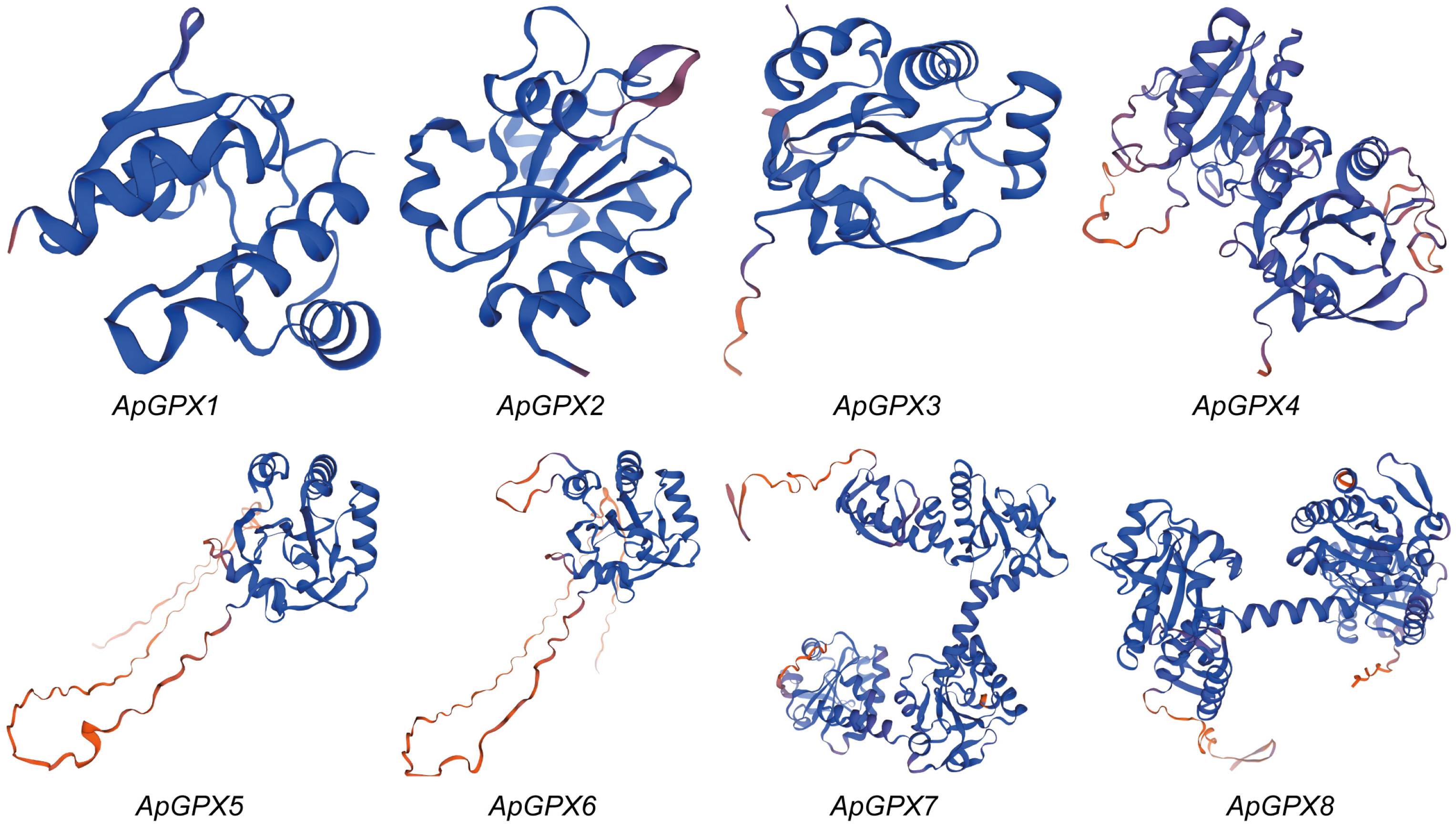 2.4. Subcellular Localization Analysis of ApGPX Genes
