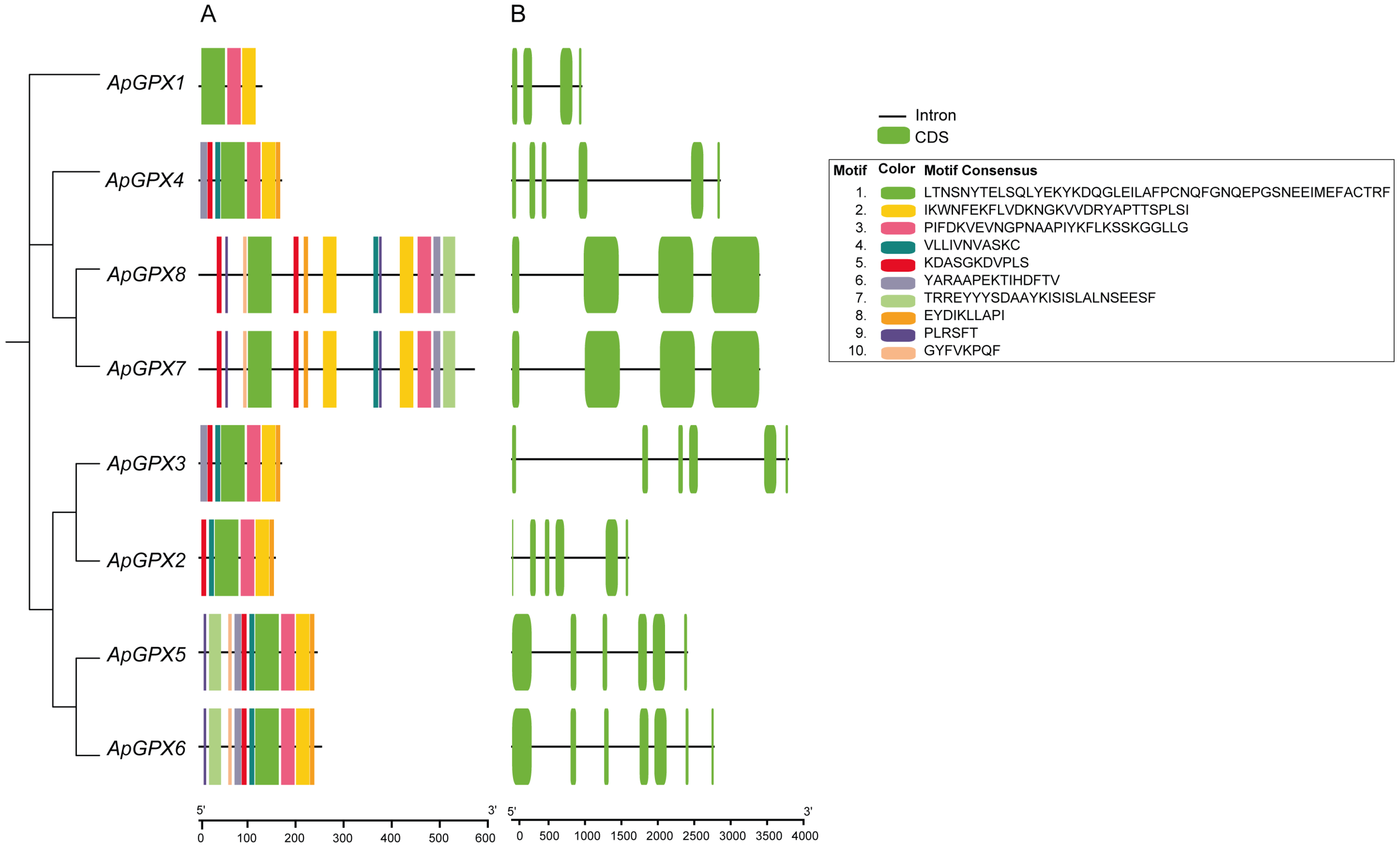 3.1. Identification and Characteristic Features of ApGPX Genes