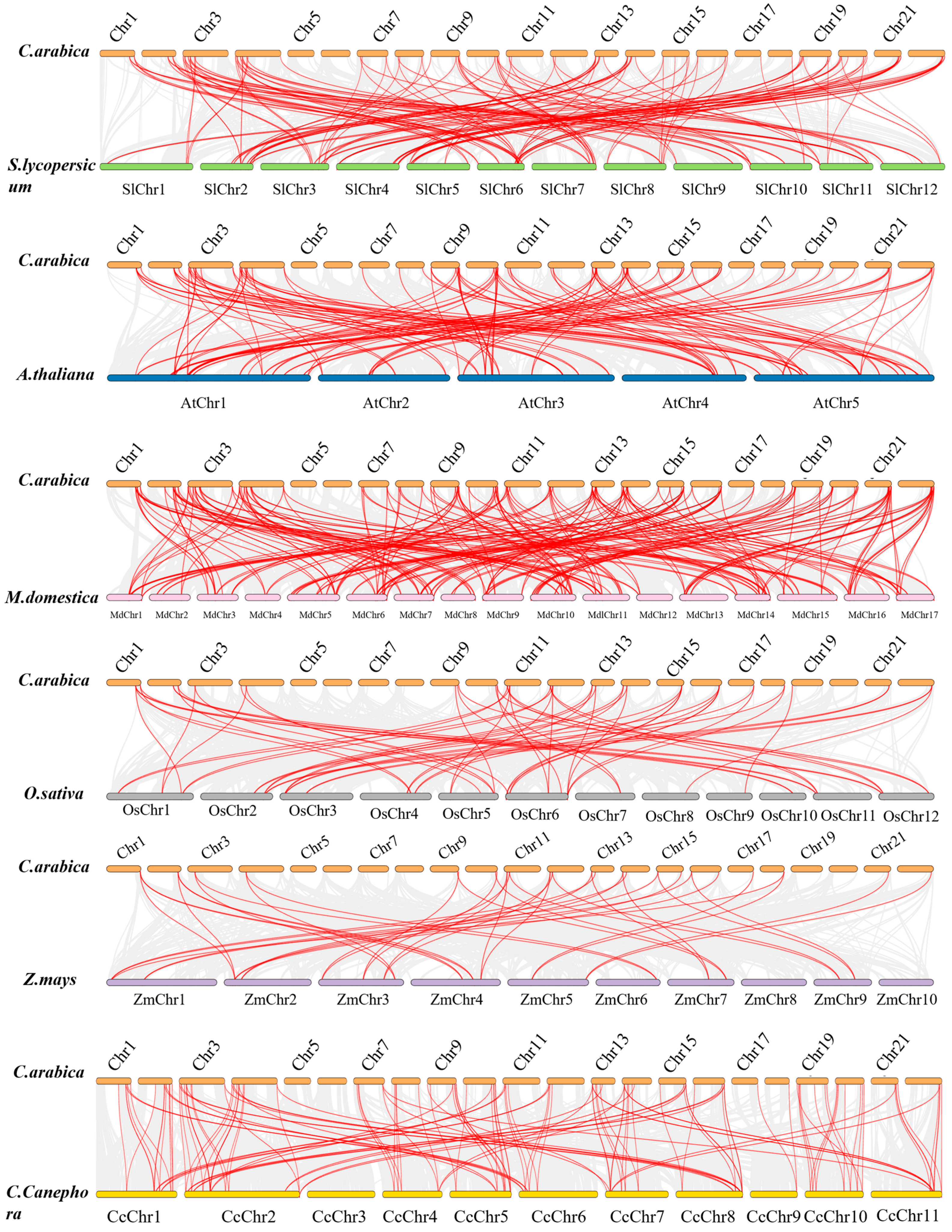 - Wang, Y.; Tang, H.; Debarry, J.D.; Tan, X.; Li, J.; Wang, X.; Lee, T.; Jin, H.; Marler, B.; Guo, H.; et al. MCScanX: A Toolkit for Detection and Evolutionary Analysis of Gene Synteny and Collinearity. Nucleic Acids Res. 2012, 40, e49. [Google Scholar] [CrossRef]