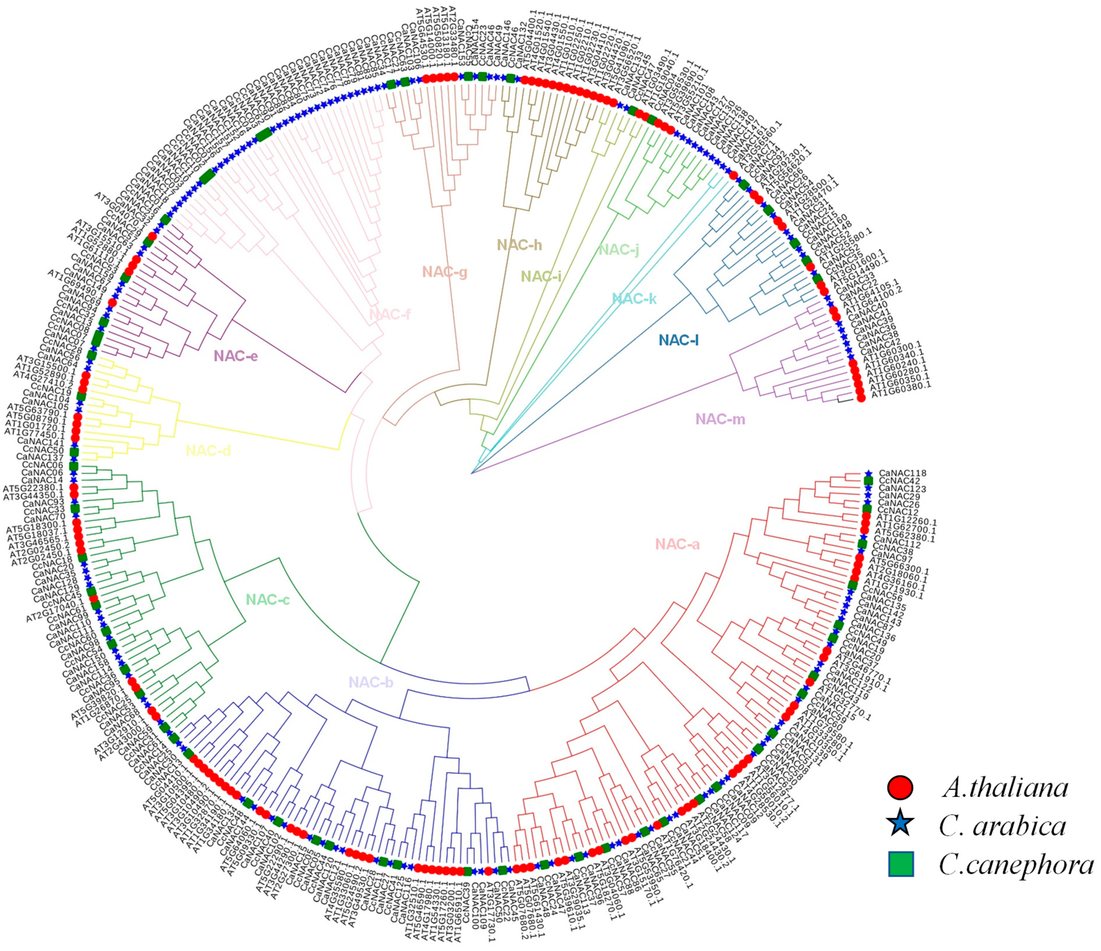 2.1. Identification of NAC Genes in C. arabica