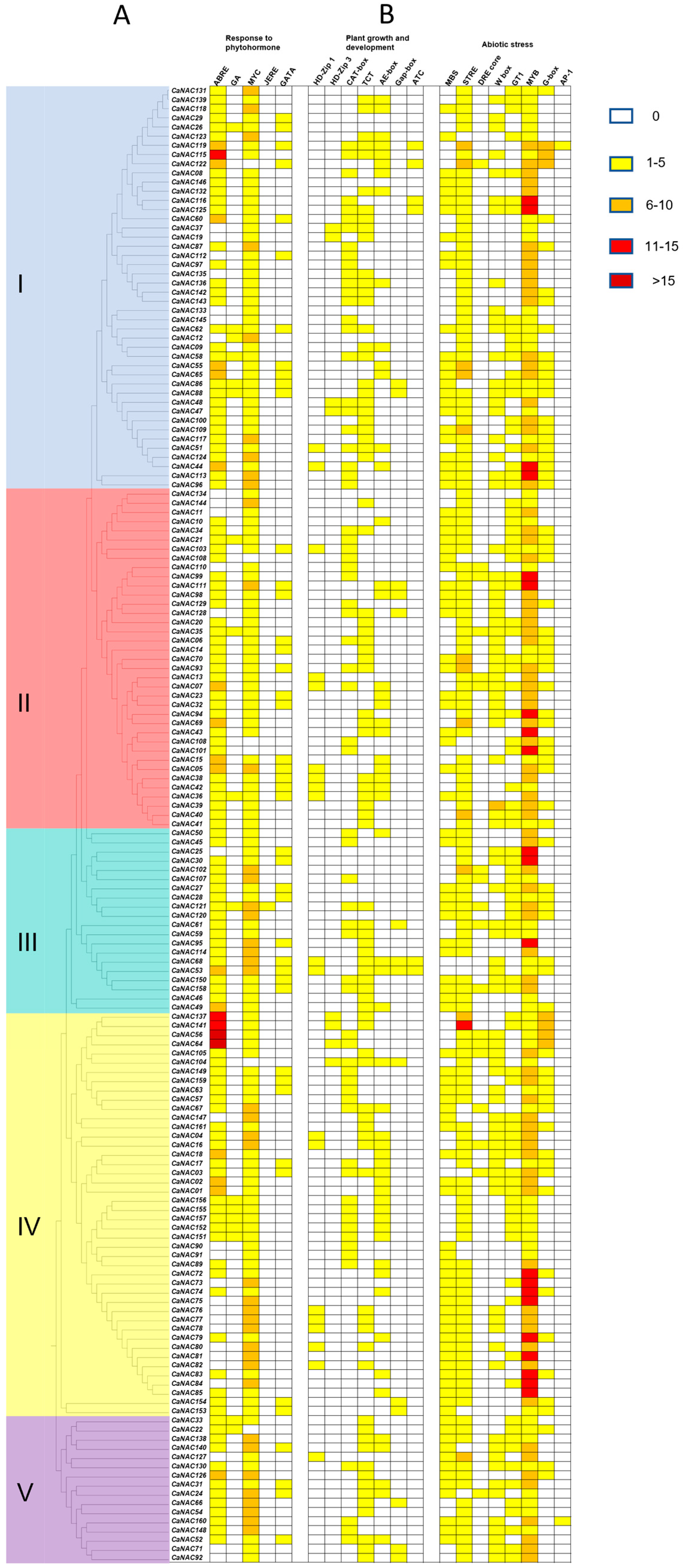 3.5. Cis-Element Analysis of CaNAC Genes