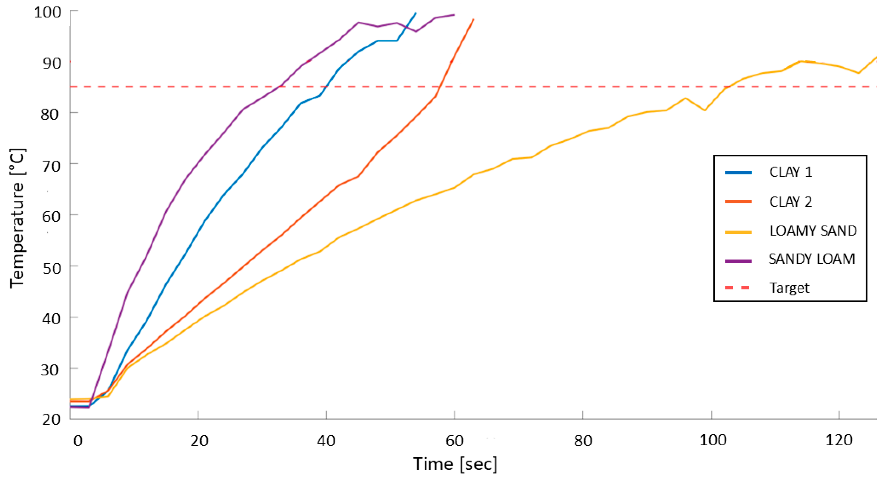 | Region | Soil Substrate | Water Content % | Power | Exposure Time | Time to Reach 85 °C |