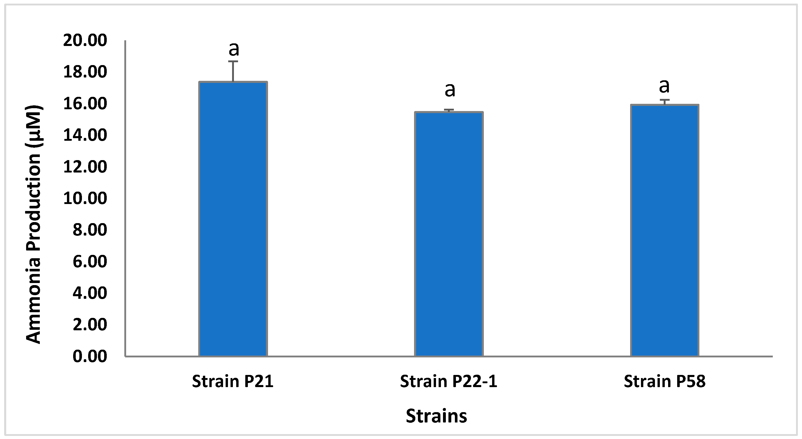 - de Oliveira, D.A.; Ferreira, S.d.C.; Carrera, D.L.R.; Serrao, C.P.; Callegari, D.M.; Barros, N.L.F.; Coelho, F.M.; Souza, C.R.B. Characterization of Pseudomonas Bacteria of Piper tuberculatum Regarding the Production of Potentially Bio-Stimulating Compounds for Plant Growth. Acta Amazon. 2021, 51, 10–19. [Google Scholar] [CrossRef]