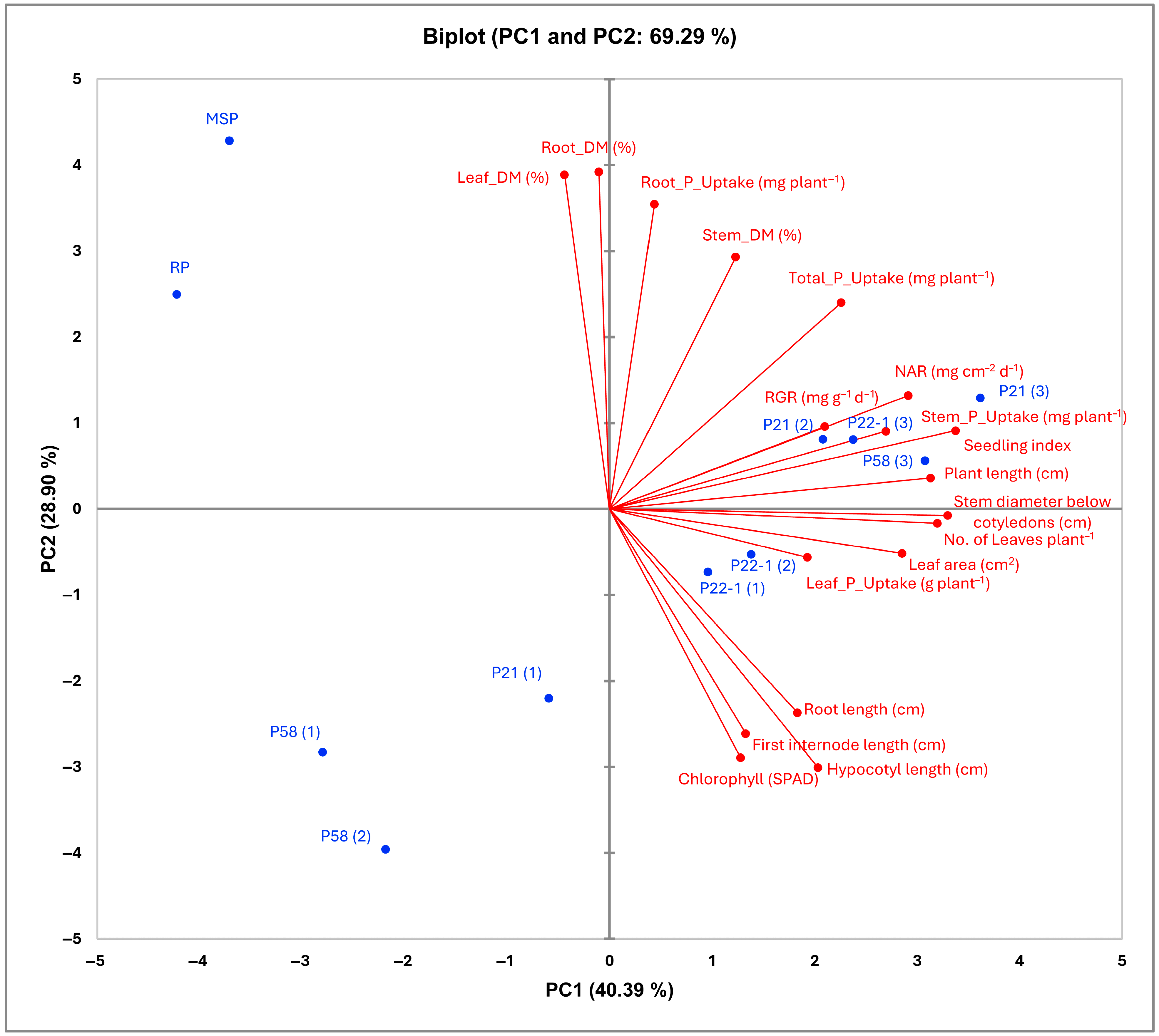 - Yagmur, B.; Gunes, A. Evaluation of the Effects of Plant Growth Promoting Rhizobacteria (PGPR) on Yield and Quality Parameters of Tomato Plants in Organic Agriculture by Principal Component Analysis (PCA). Gesunde Pflanz. 2021, 73, 219–228. [Google Scholar] [CrossRef]