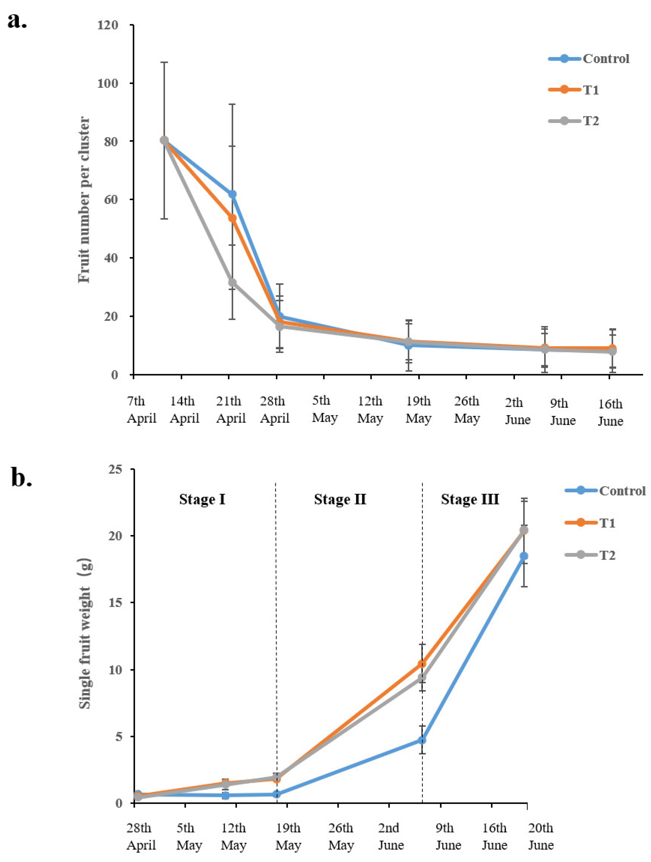 | T1 | 37 | 33.3 | 34.7 | 33.5 | 20.4 a | 10.3 a | 18.68 a | 1.25 b |