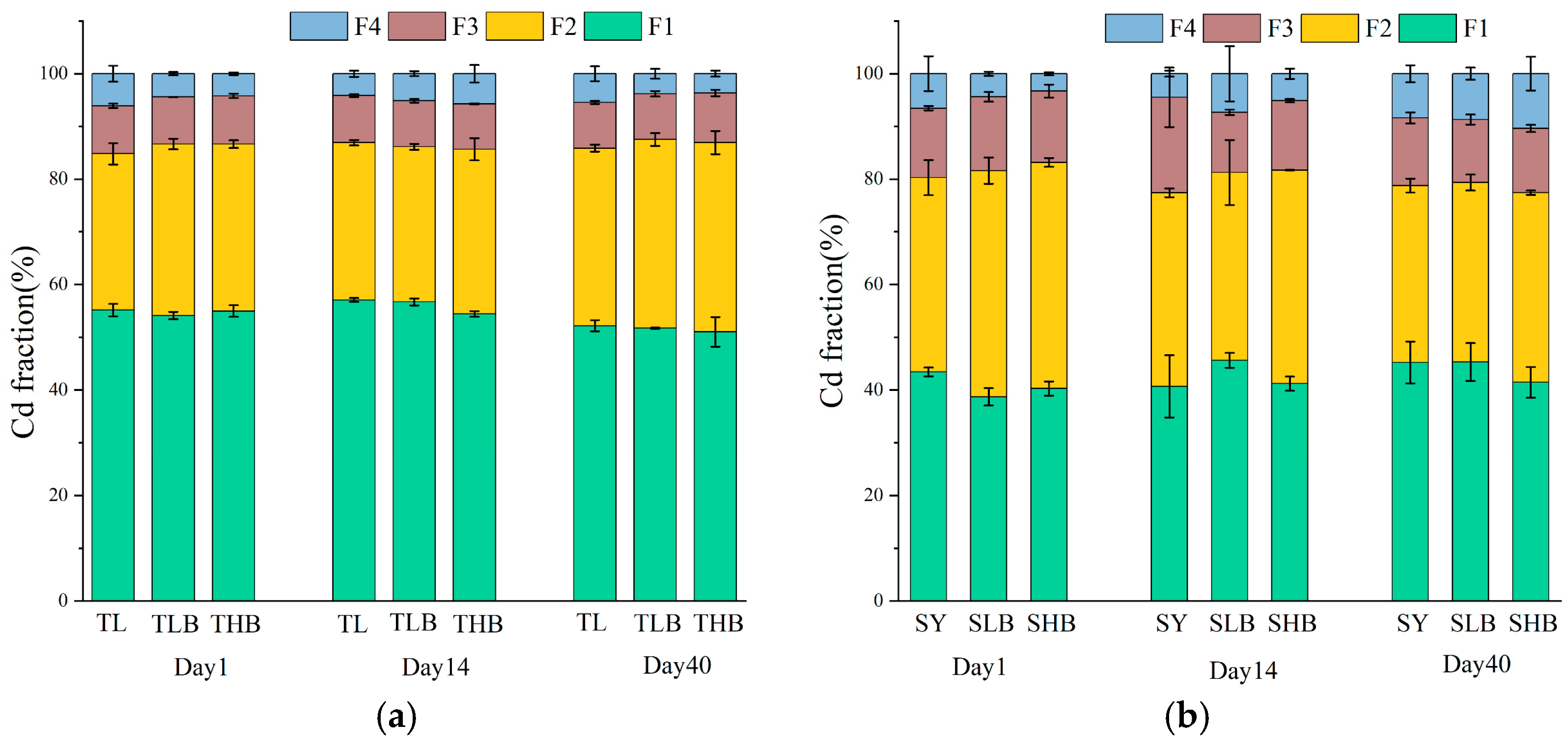 3.5. Changes in Available Cadmium and Cadmium Speciation in Soil