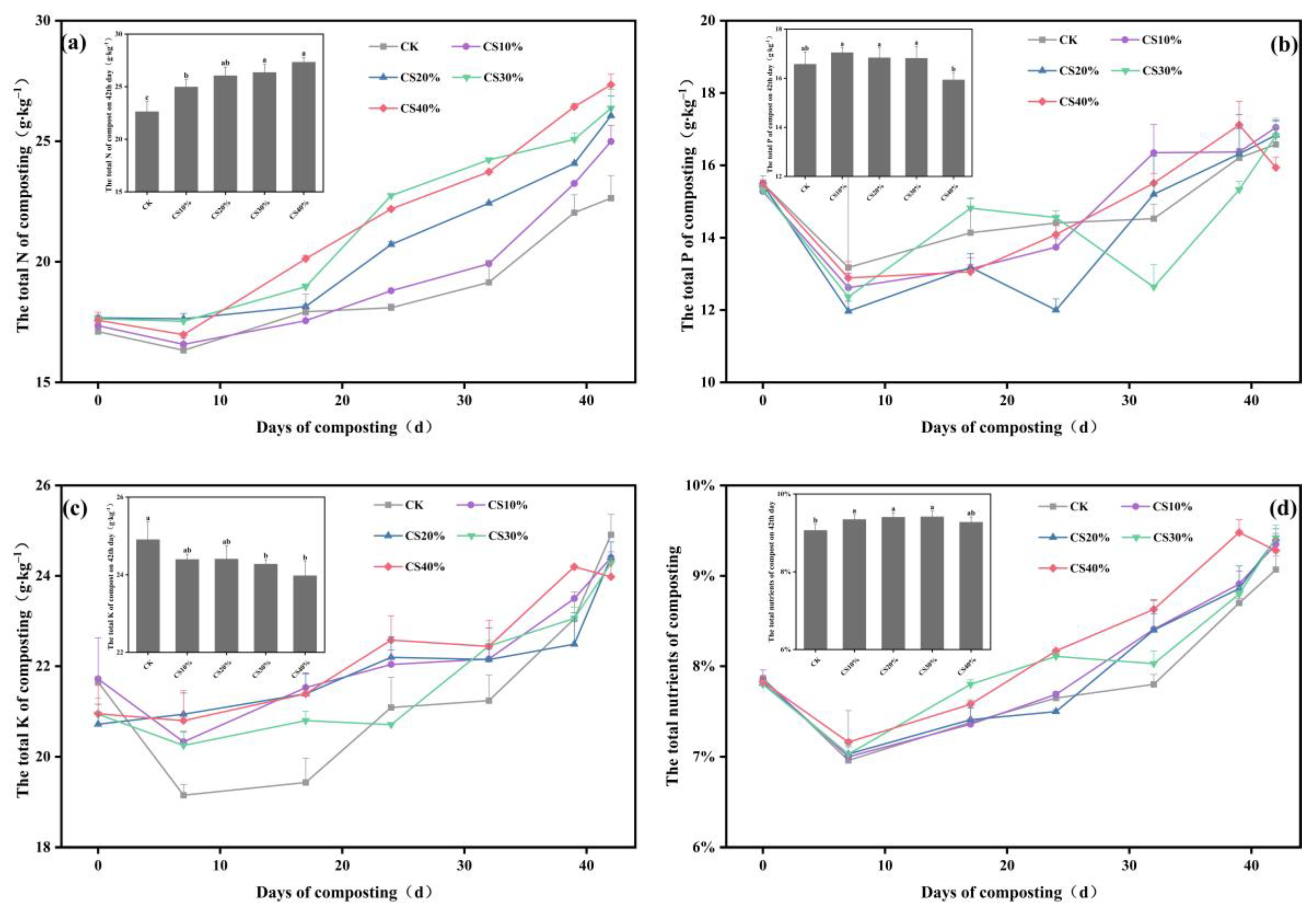 4.2. Effect of CS Addition on Nutrient Retention During Composting