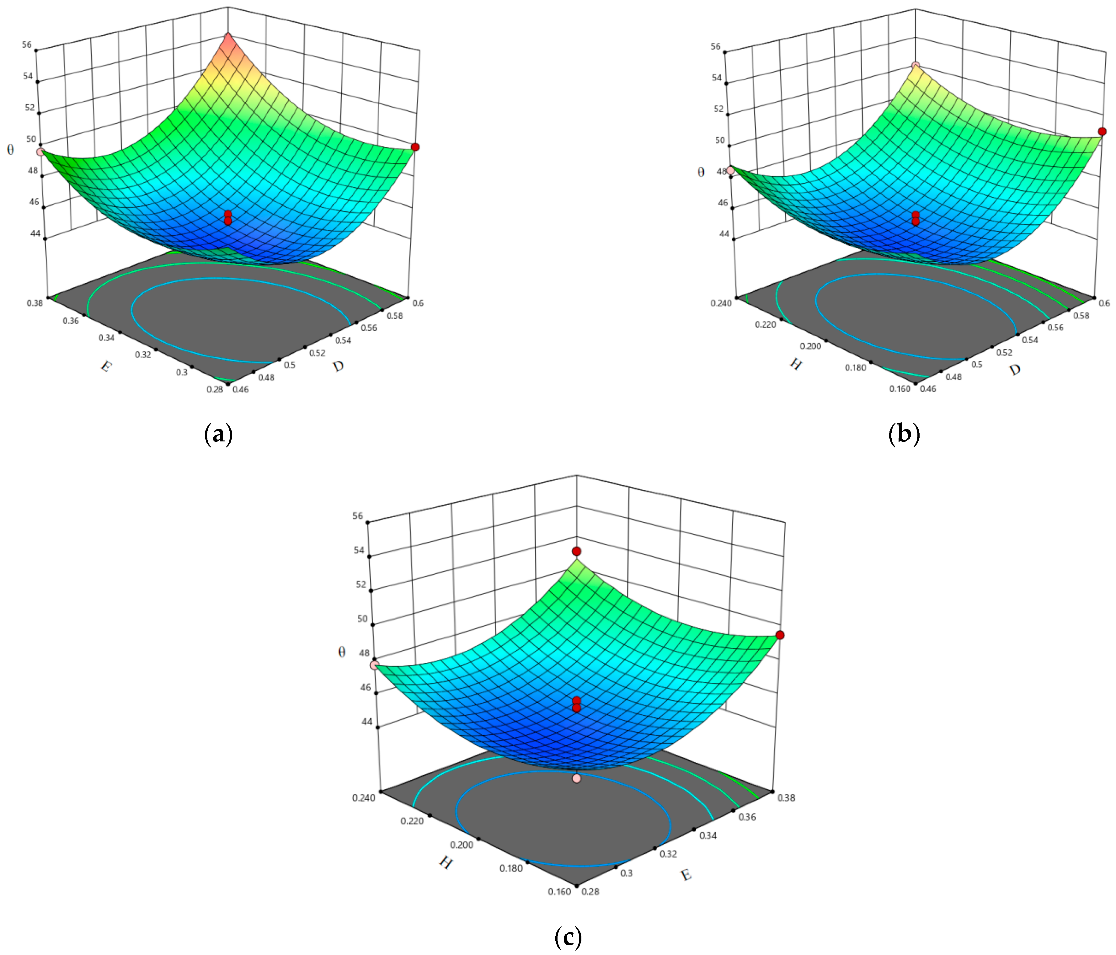 3.4. Analysis of Plackett Burman Test Results for the Stacking Angle