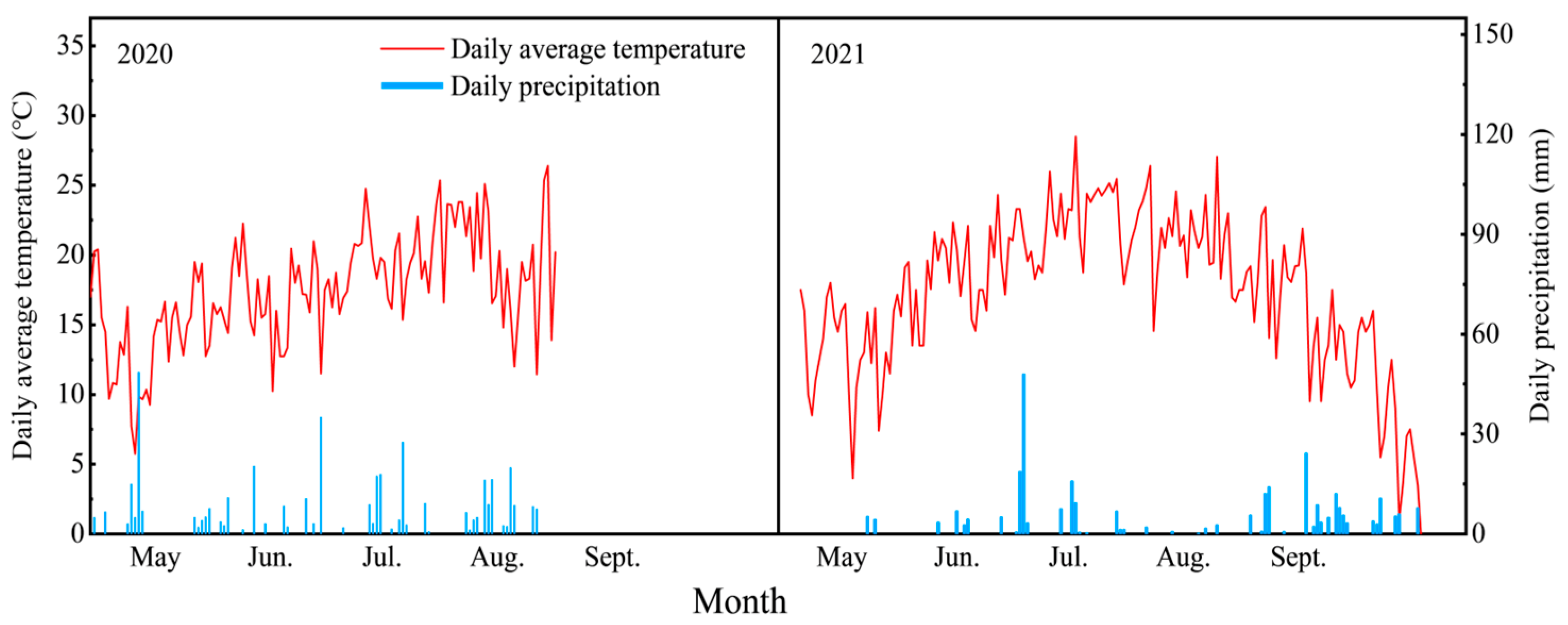 - Wang, J.; Jun, F.; Wang, H.; Wang, X.; Xing, Y.Z.; Gao, Y.Q.; Hao, M.D. Dual–mulching under no-tillage promotes maize root growth and improves yield by optimizing soil hydrothermal conditions in semi-arid regions. Agric. Water Manag. 2025, 312, 109428. [Google Scholar] [CrossRef]