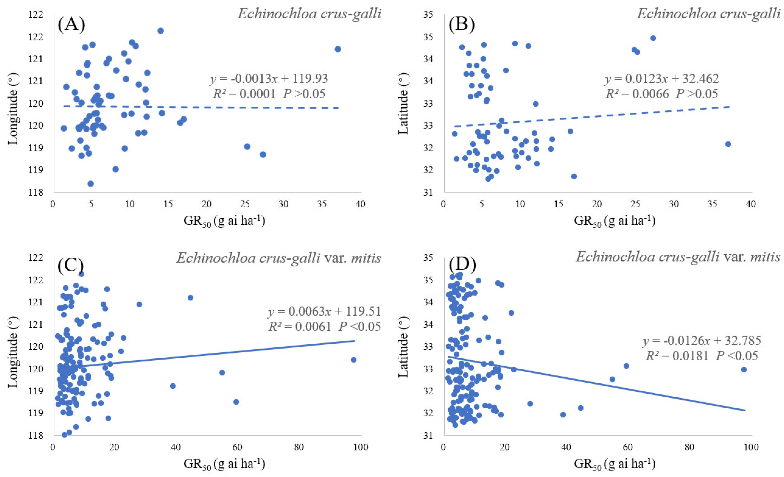 - Chen, G.; Chen, Y.; Masoom, A.; Wu, J.; Wei, H. Baseline sensitivity of Echinochloa glabrescens to florpyrauxifen-benzyl on a regional scale: A case study of Jiangsu Province, China. Weed Technol. 2025, 39, e35. [Google Scholar] [CrossRef]