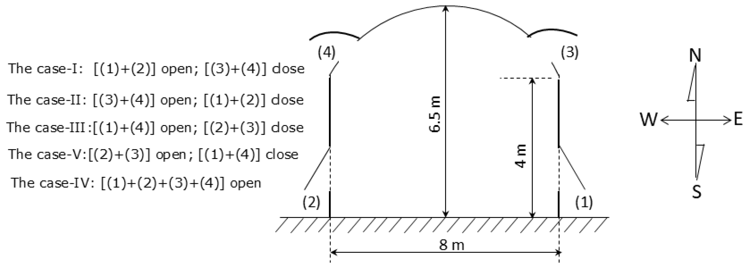 - Al-Ajlouni, M. Natural ventilation in greenhouses: Principles, design, and applications. J. Agric. Eng. 2020, 13, 58–72. [Google Scholar]
