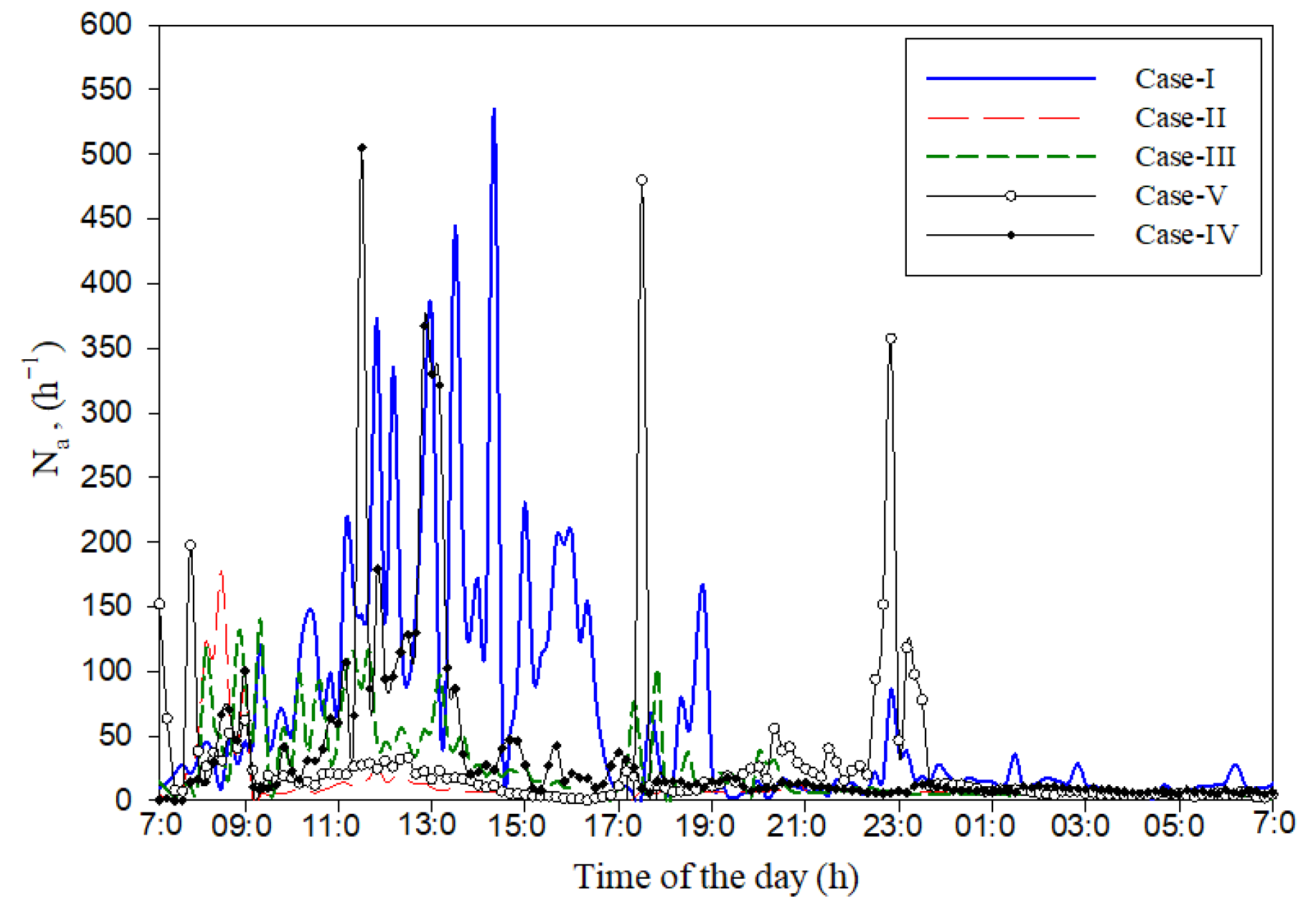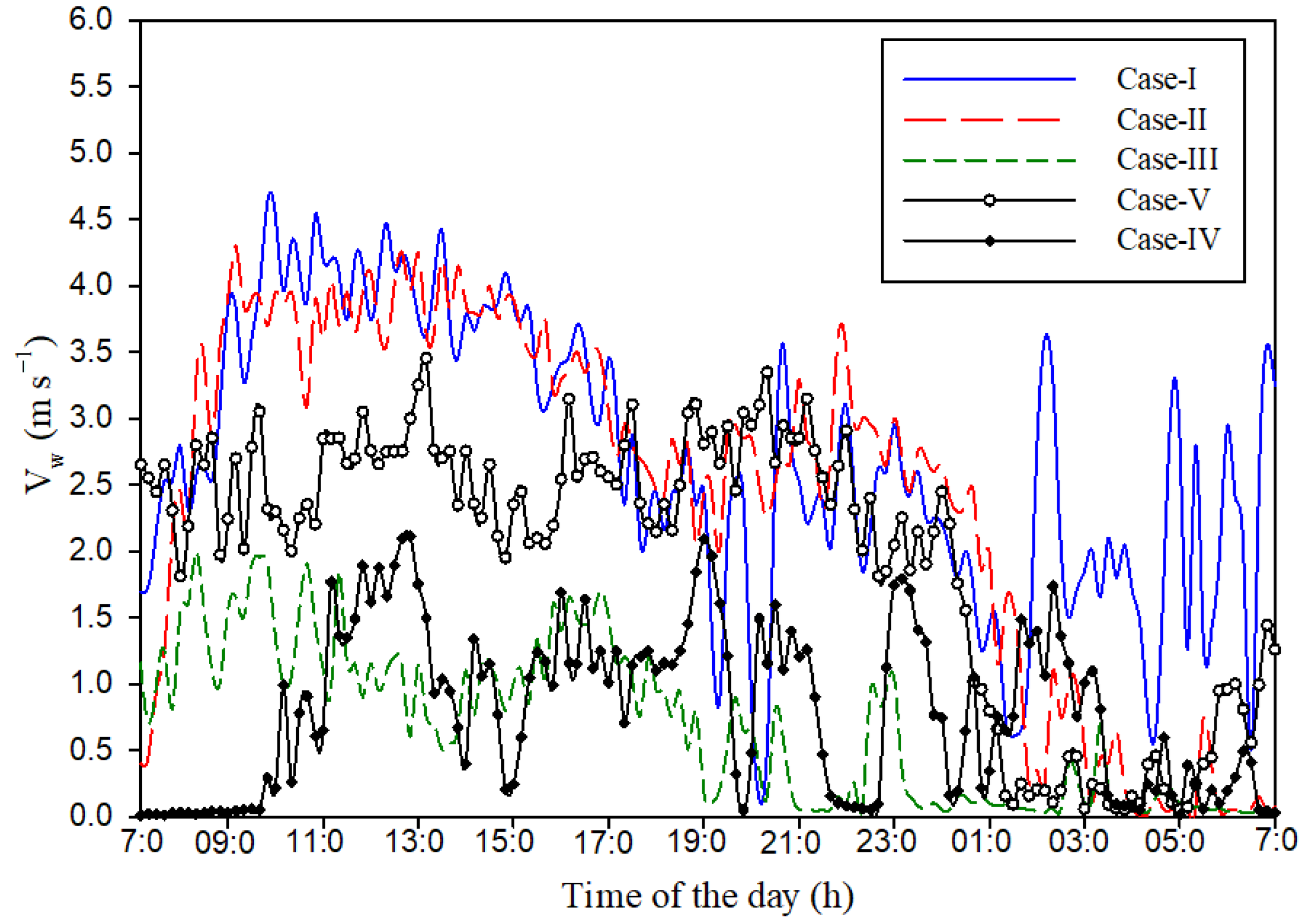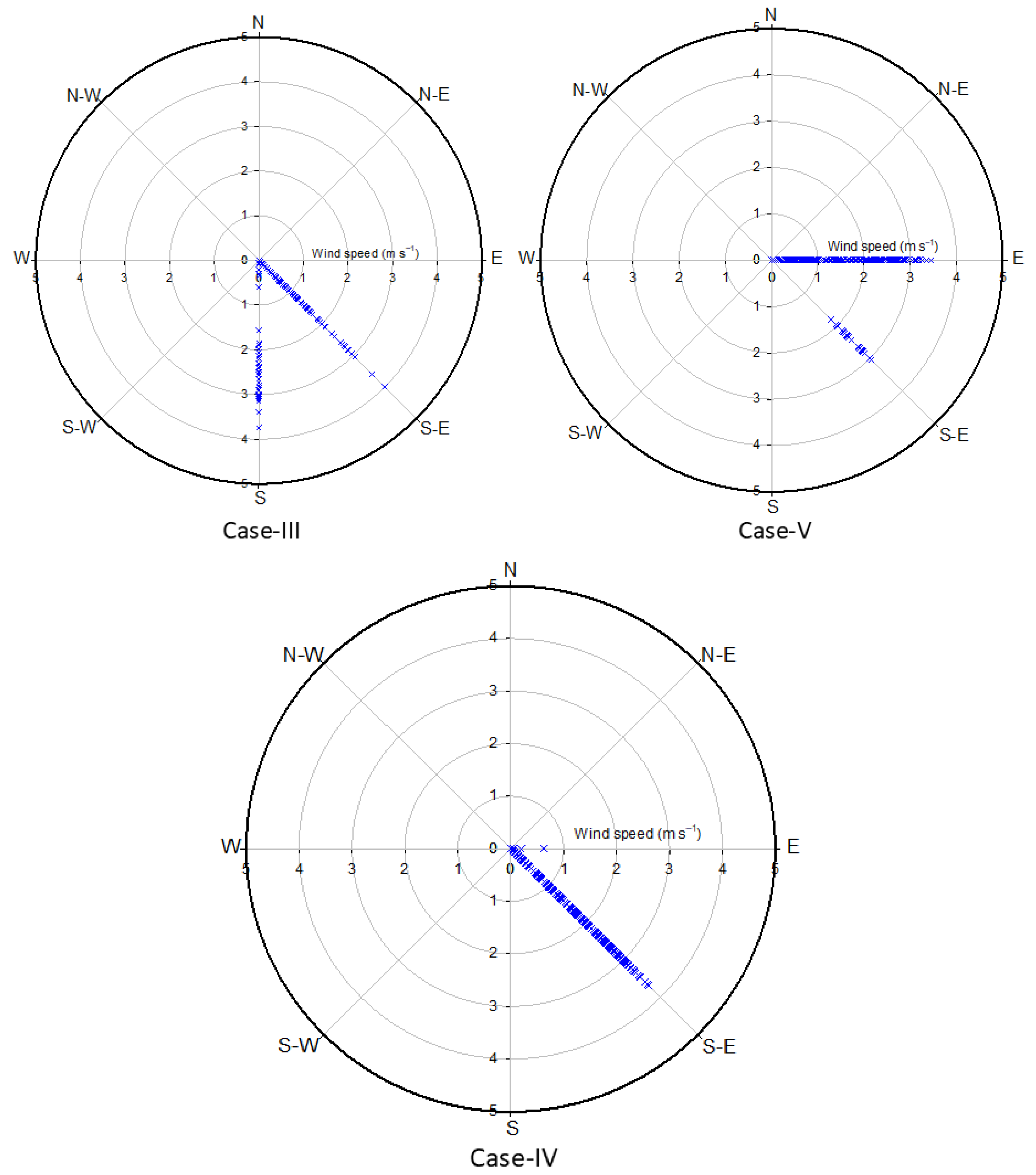 | Opening Cases | Buoyancy-Driven, % (Vw ≤ 1 m·s−1) | Combined Regime, % (1 < Vw ≤ 2 m·s−1) | Wind-Driven, % (Vw > 2 m·s−1) | (m·s−1) |