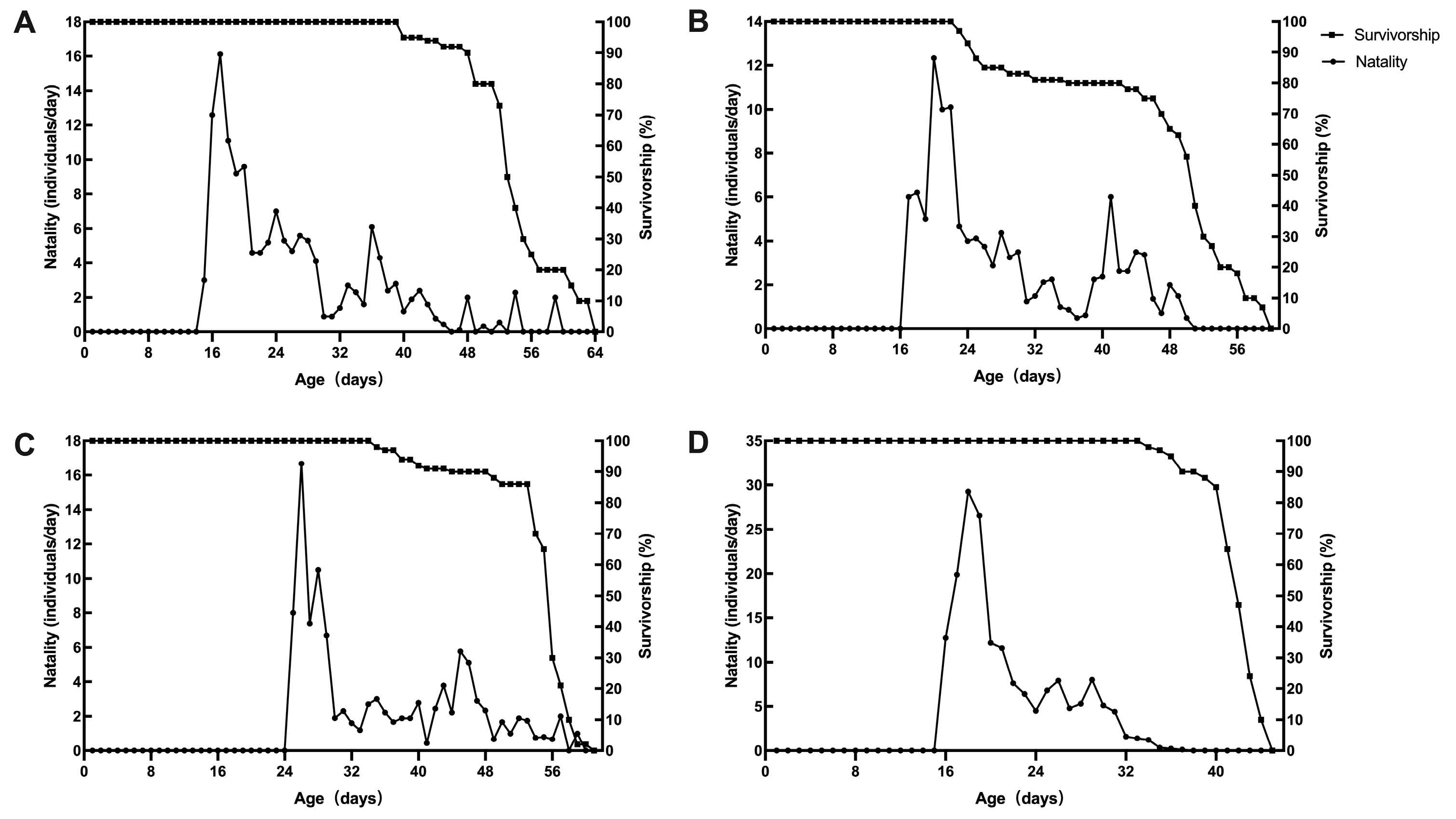 2.6. Longevity and Fecundity of N. penicillioides Adults