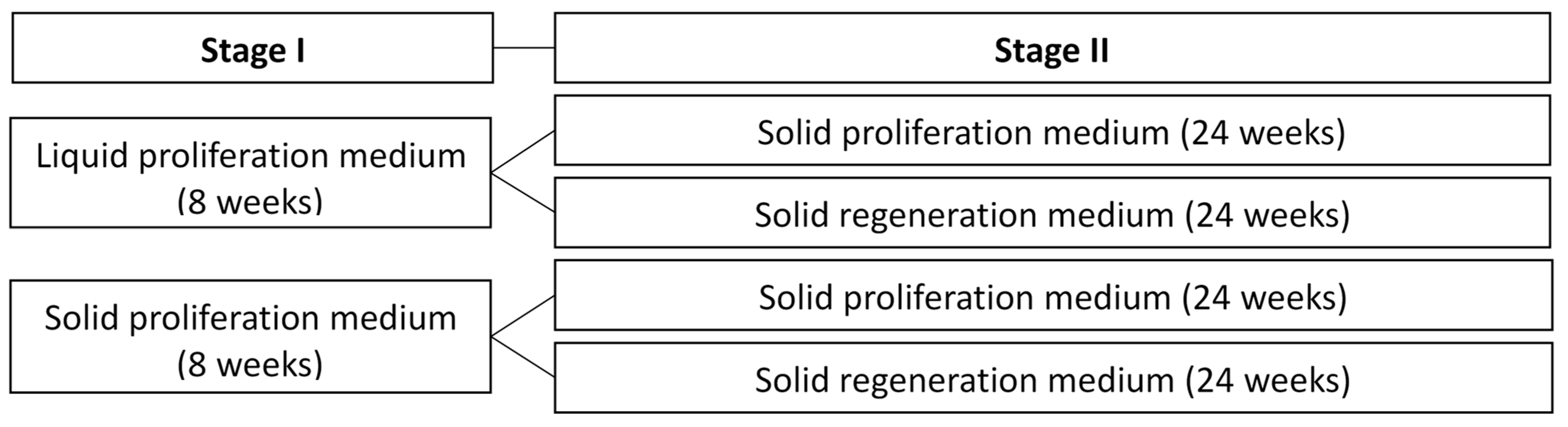 - Hvoslef-Eide, A.K.; Preil, W. (Eds.) Liquid Culture Systems for In Vitro Plant Propagation, 1st ed.; Springer: Dordrecht, The Netherlands, 2005. [Google Scholar] [CrossRef]