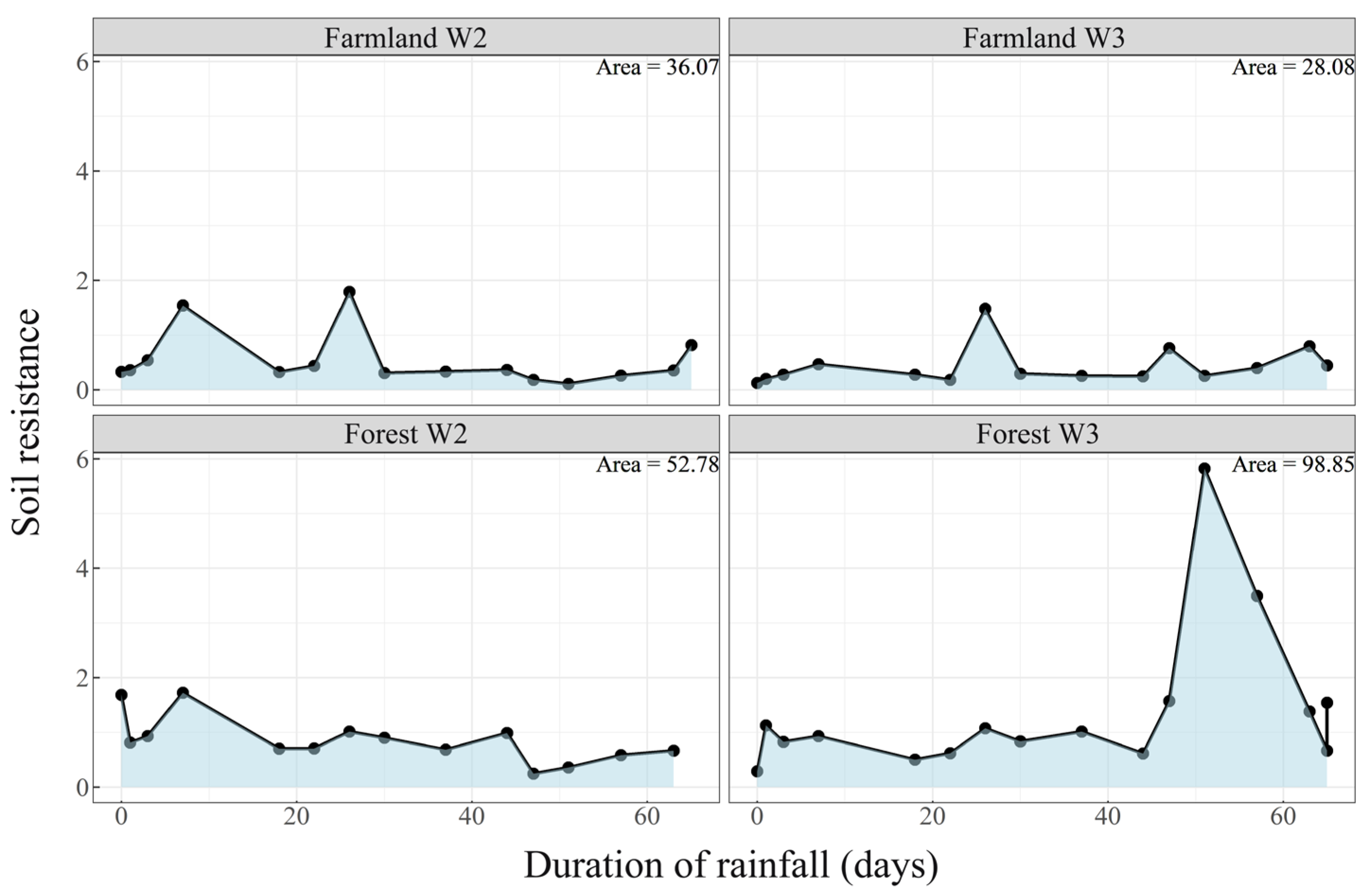 | forest W1 | −0.064 ± 0.020 bA | 113.72 ± 7.42 bA | 200.45 ± 22.21 abB | 59,848.45 ± 6626.46 abB |