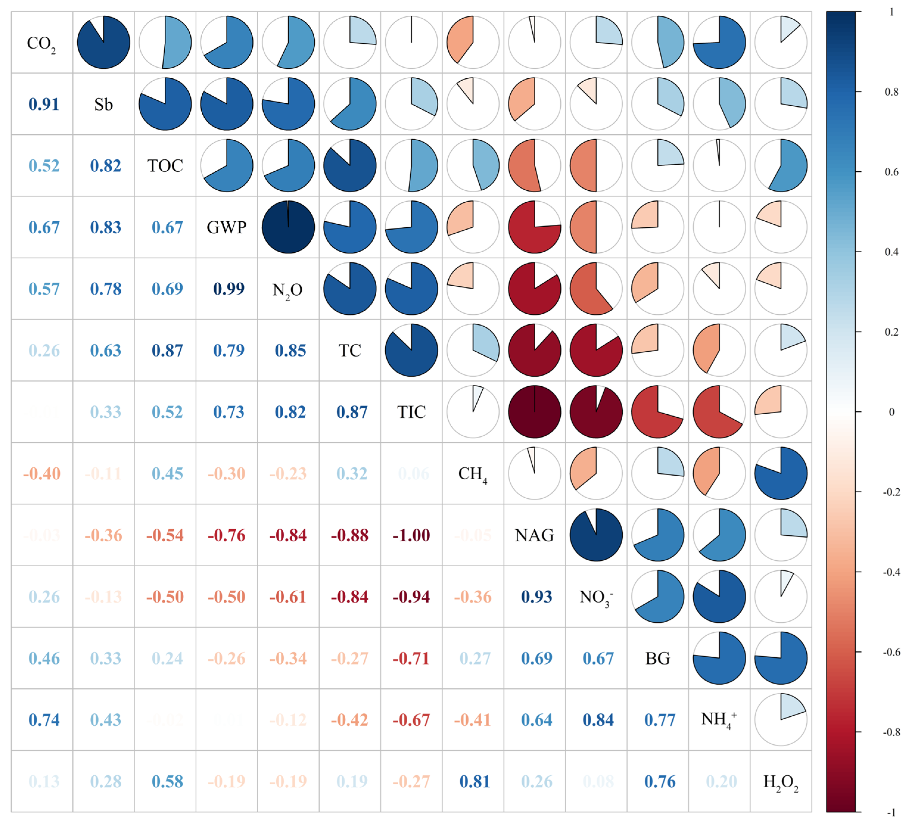 | Treatment | Cumulative CH4 Emissions (kg·hm−2) | Cumulative CO2 Emissions (kg·hm−2) | Cumulative N2O Emissions (kg·hm−2) | GWP (kg·hm−2) |