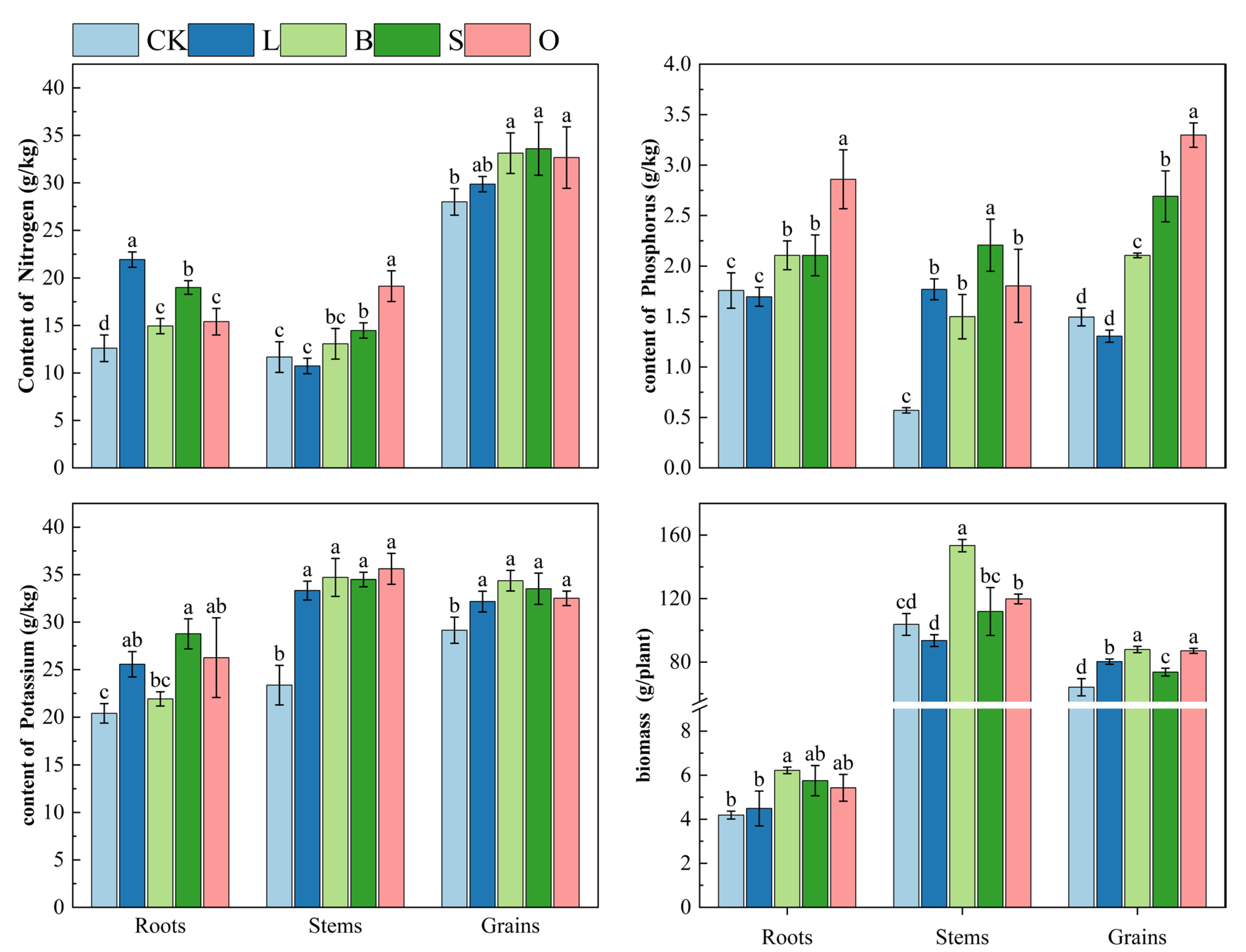 | O (organic fertilizer) | 7.89 | 18.2 | 2.27 | 156 | 245 |