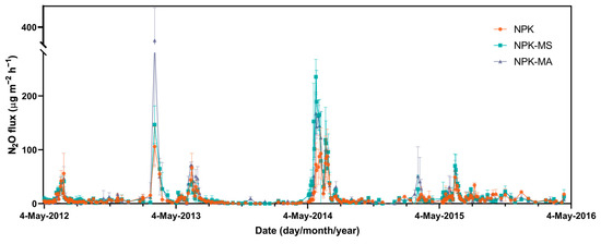 APA StyleDong, D., Yang, W., Gao, M., Gu, J., Sun, H., Kong, S., & Xu, H. (2025). Effects of Pig Manure Compost Application Timing (Spring/Autumn) on N2O Emissions and Maize Yields in Northeast China. Agronomy, 15(11), 2487. https://doi.org/10.3390/agronomy15112487