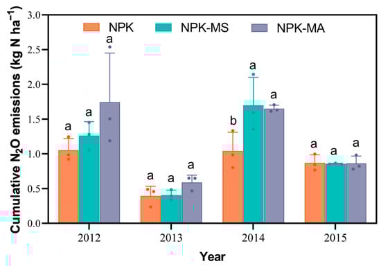 Chicago/Turabian StyleDong, Dan, Weichao Yang, Mingfu Gao, Jian Gu, Hao Sun, Shuang Kong, and Hui Xu. 2025. "Effects of Pig Manure Compost Application Timing (Spring/Autumn) on N2O Emissions and Maize Yields in Northeast China" Agronomy 15, no. 11: 2487. https://doi.org/10.3390/agronomy15112487