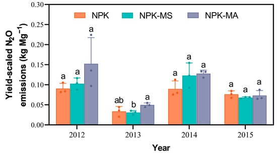 3.4. Yield-Scaled N2O Emissions