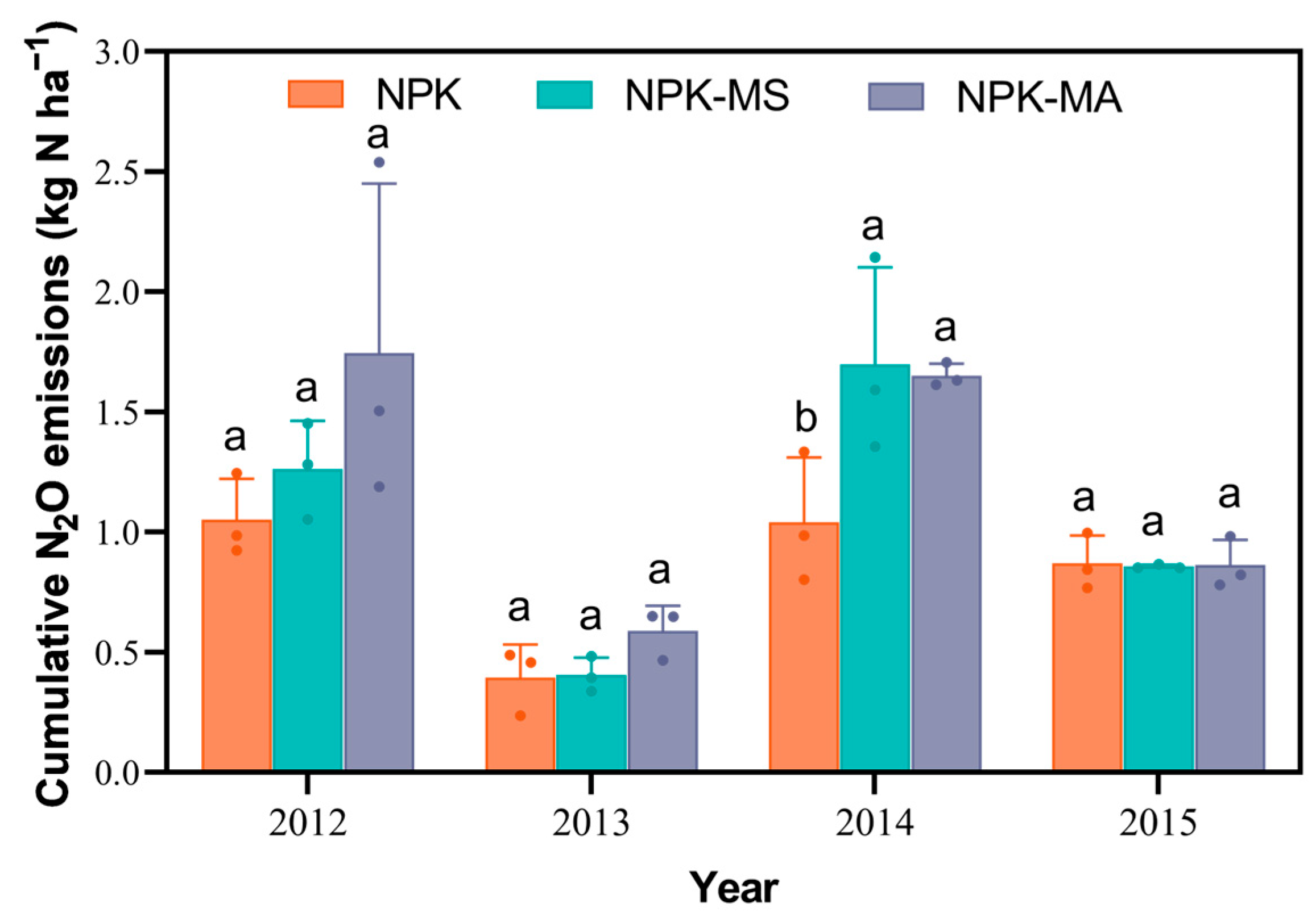- Meng, L.; Ding, W.; Cai, Z. Long-term application of organic manure and nitrogen fertilizer on N2O emissions, soil quality and crop production in a sandy loam soil. Soil Biol. Biochem. 2005, 37, 2037–2045. [Google Scholar] [CrossRef]
