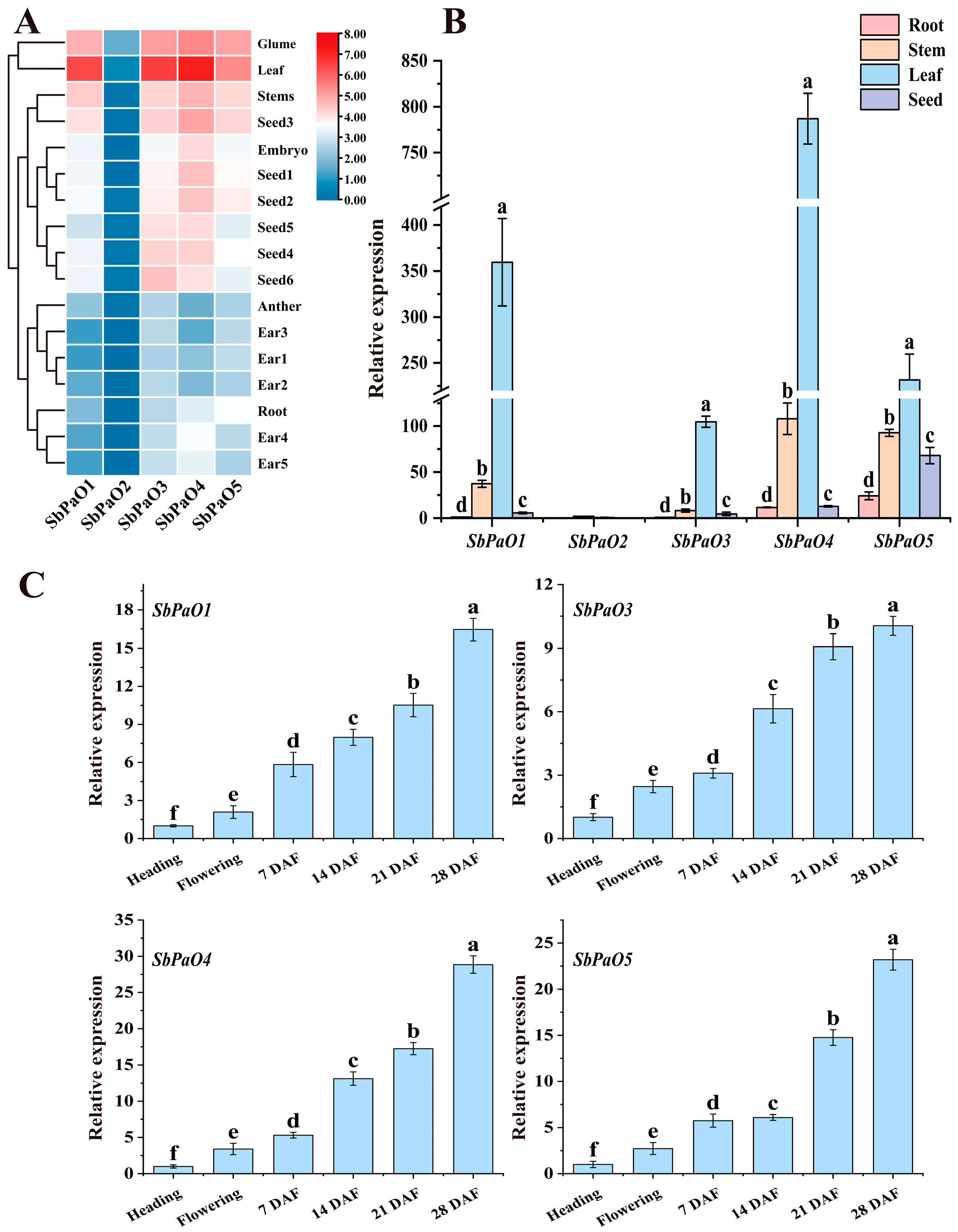 3.6. Tissue-Specific Expression Patterns of SbPaO Genes