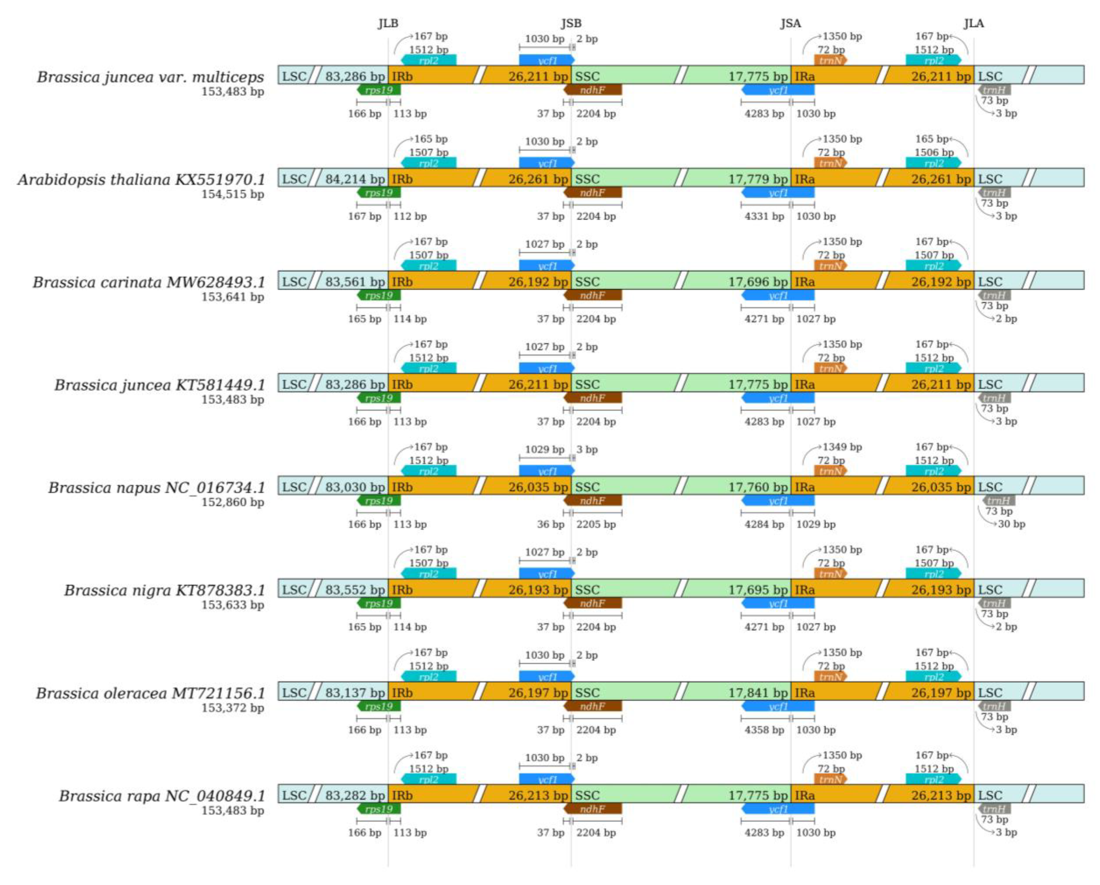 Chloroplast genome characteristics of B. juncea var. multiceps.