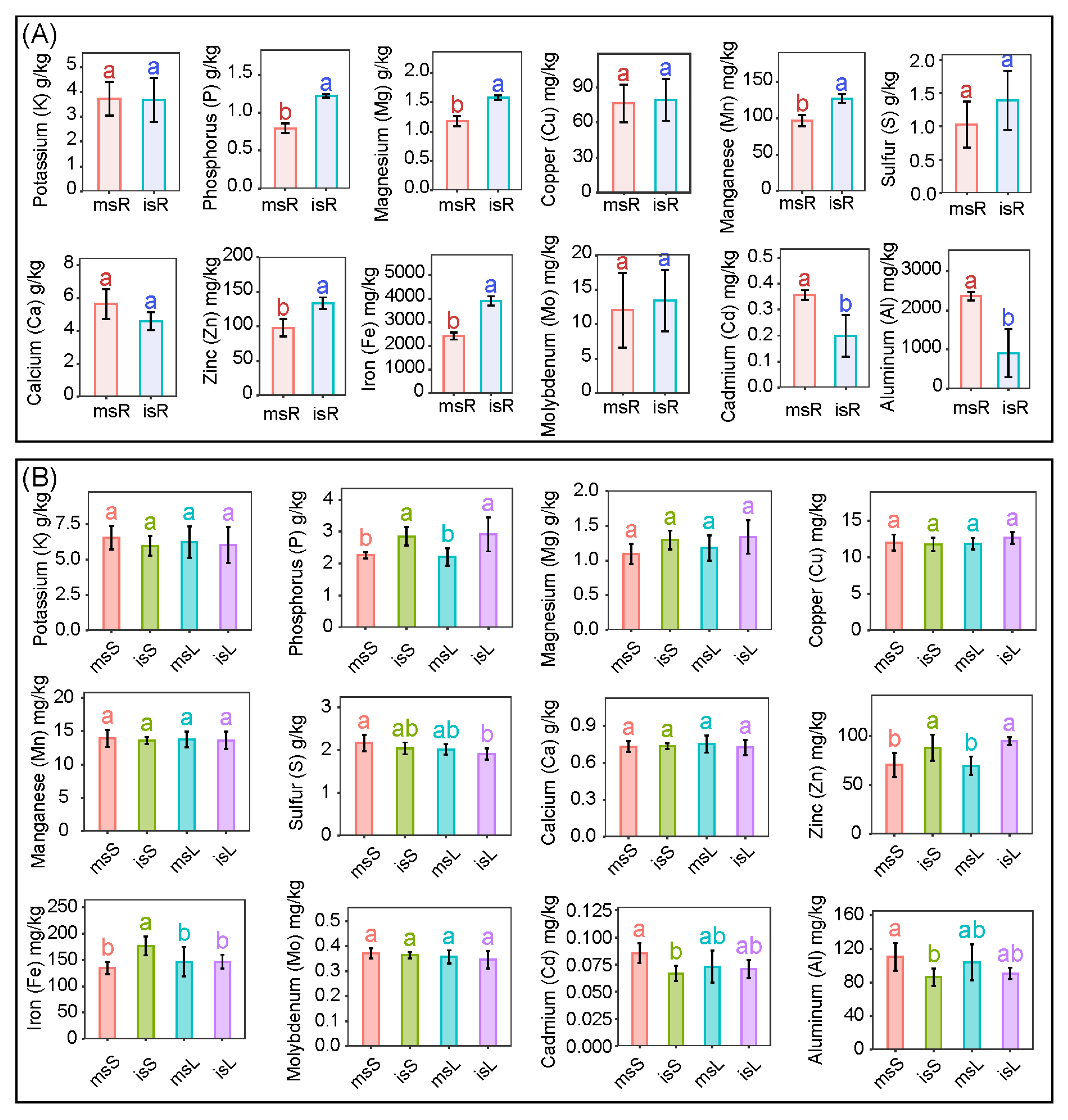 4.3. Regulation of Metal Transport by Transcriptomic and Metabolomic Networks Promotes Plant Growth and Hormonal Homeostasis