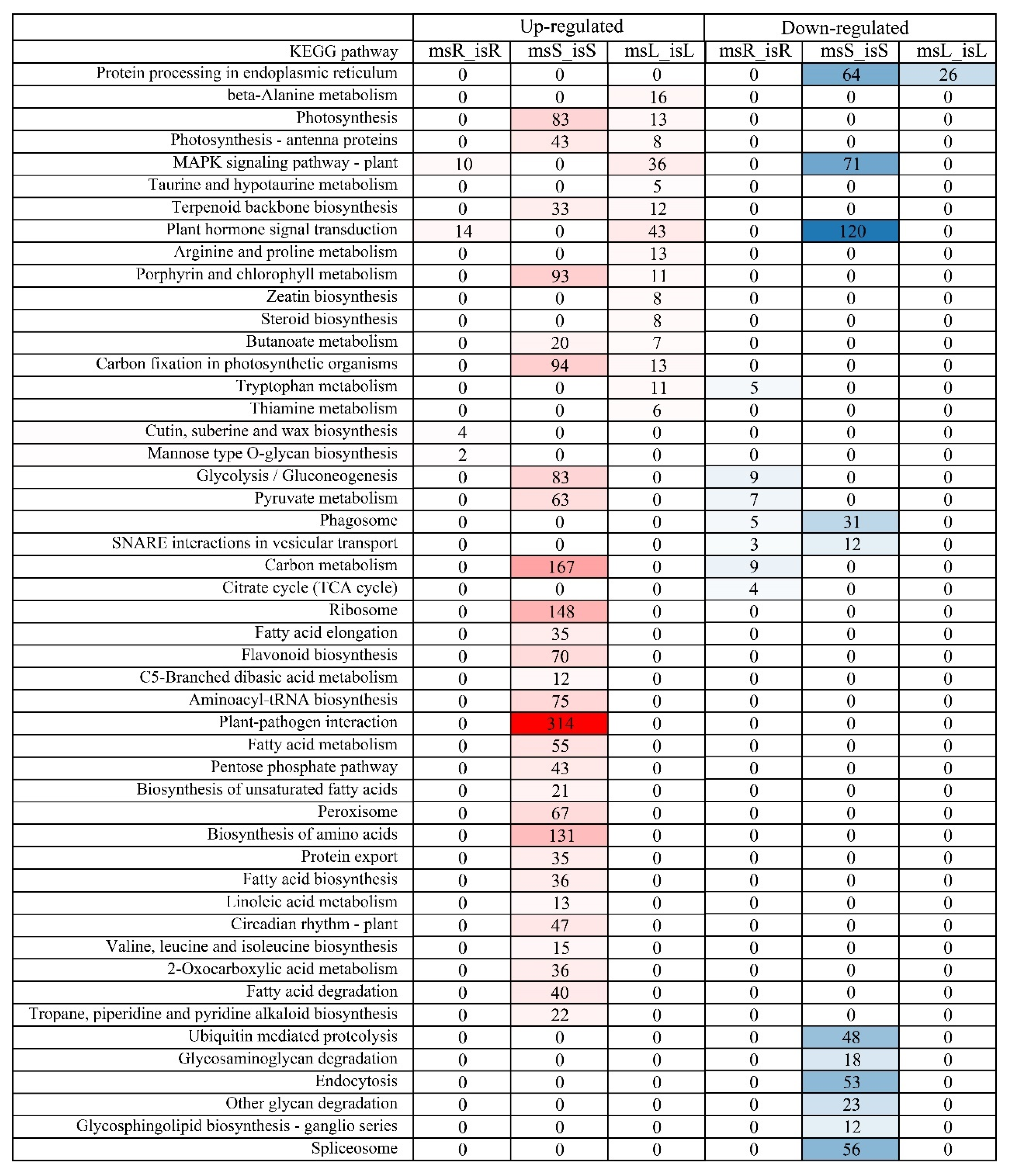 3.5. DEGs in Sugarcane Samples Under Different Cultivation Conditions
