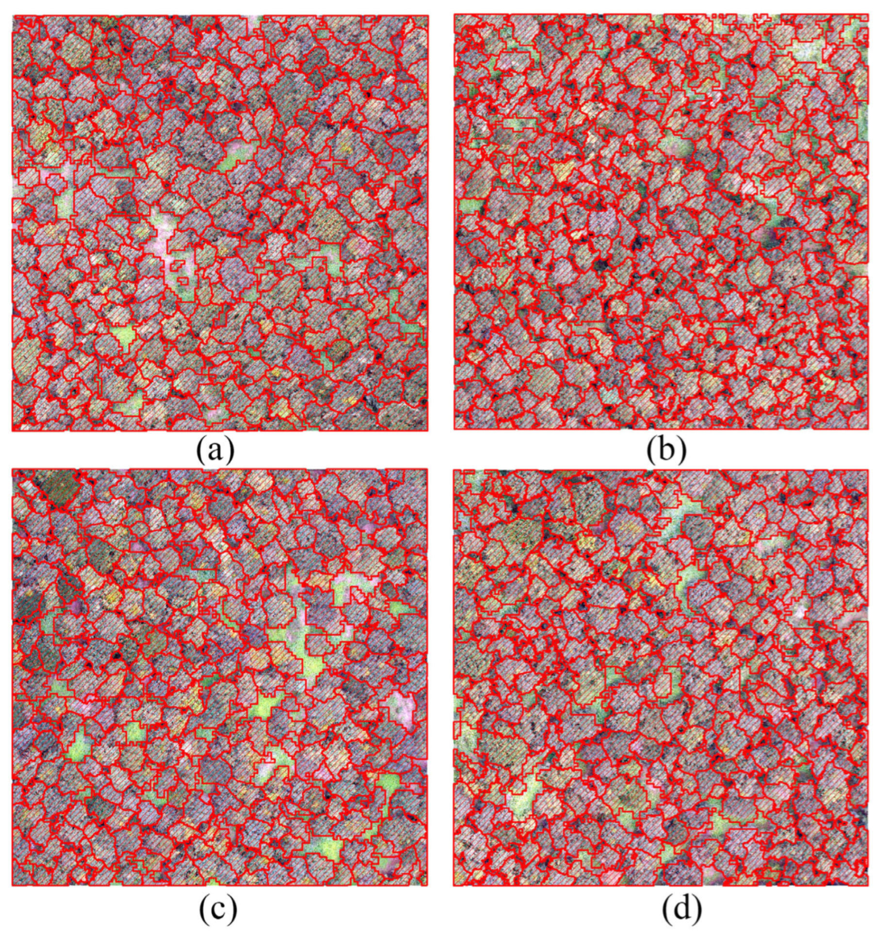 - Zheng, X.; Qiu, C.X.; Li, C.J.; Zhou, J.P.; Huai, H.J.; Wang, J.Y.; Zhang, Q.Y. Object-oriented subfield boundary extraction from UAV remote sensing images. Sci. Technol. Innov. 2022, 3, 1–3. [Google Scholar]
